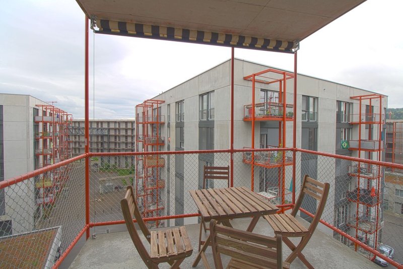 4 people share a kitchen with dining area and two bathrooms with toilet. All rooms are new and in good condition.