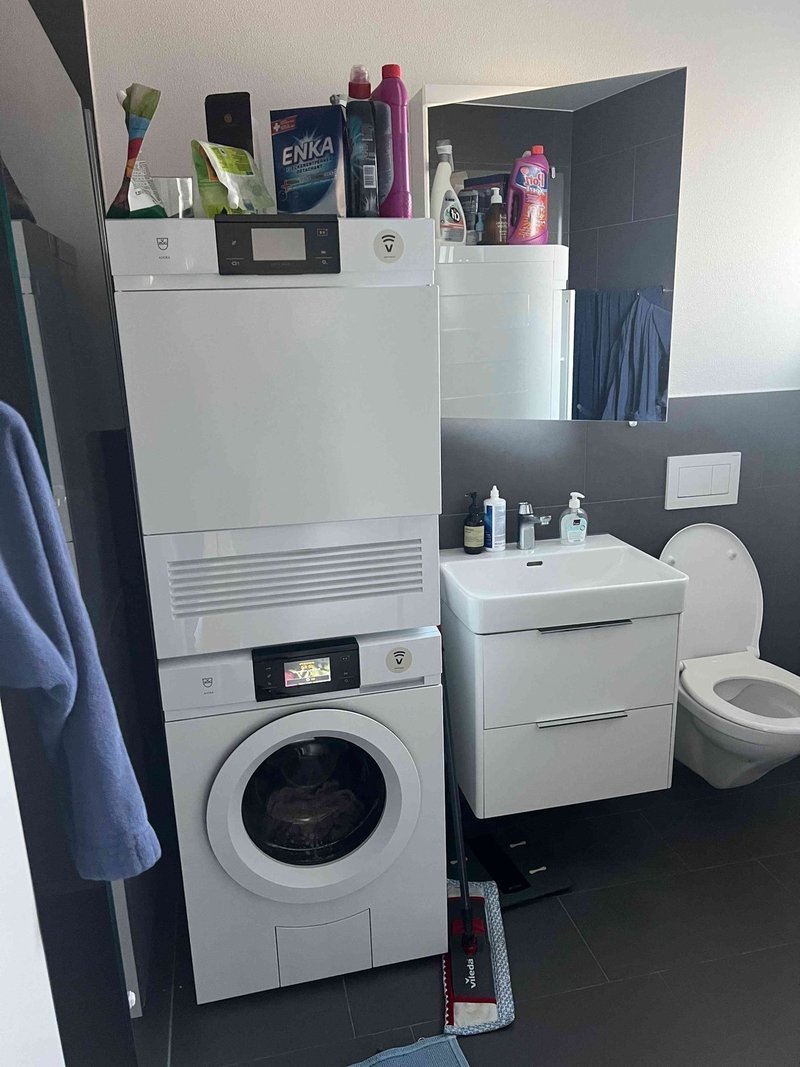 Die Wohnung ist mit hochwertigen Geräten ausgestattet, darunter eine Waschmaschine, ein Wäschetrockner und ein Geschirrspüler, die Ihnen den Alltag erleichtern. Ein Aussenparkplatz steht Ihnen für 60 Franken pro Monat zur Verfügung und ein Balkon lädt zum Entspannen ein.