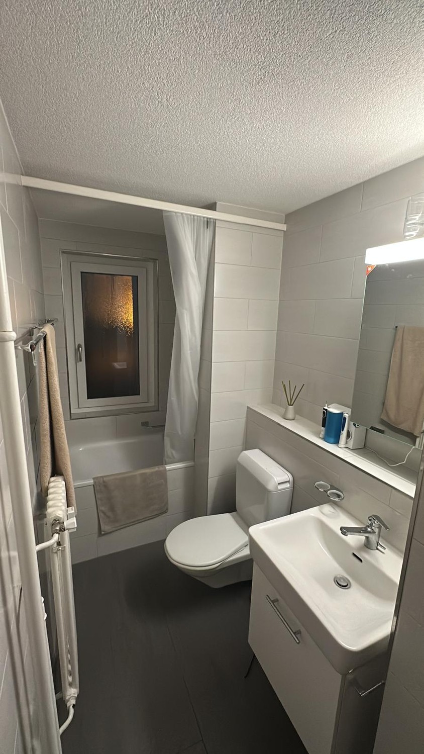I am a working professional (29, male speaking English and Spanish), very sporty, easygoing, and with a relaxed sense of humor. Sometimes I like to chat, but sometimes I just need some peace and quiet – it should be a good mix. It's important to me that you feel comfortable, are considerate, and respect your roommates' privacy. So, if you're easygoing, keep your home clean, and enjoy shared living, but also appreciate your peace, this is a perfect fit. The apartment has everything you need: a well-equipped kitchen with a dishwasher, a cozy living room, a bathroom with a shower and bathtub, and Wi-Fi. Storage room in the basement is also available (washing machine and dryer are shared with the building)