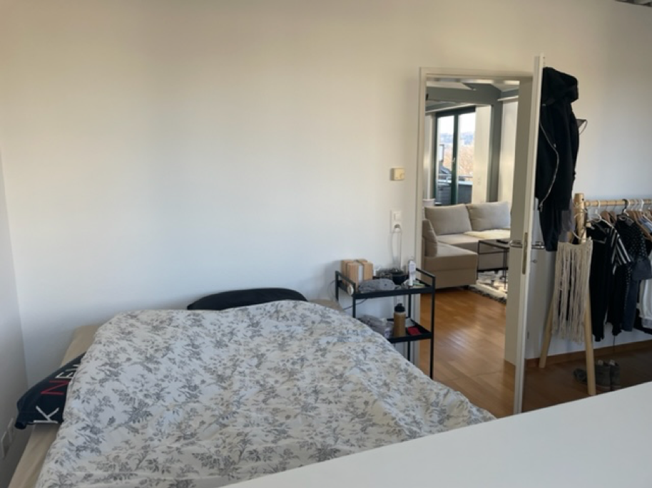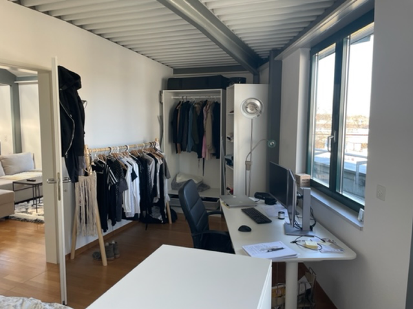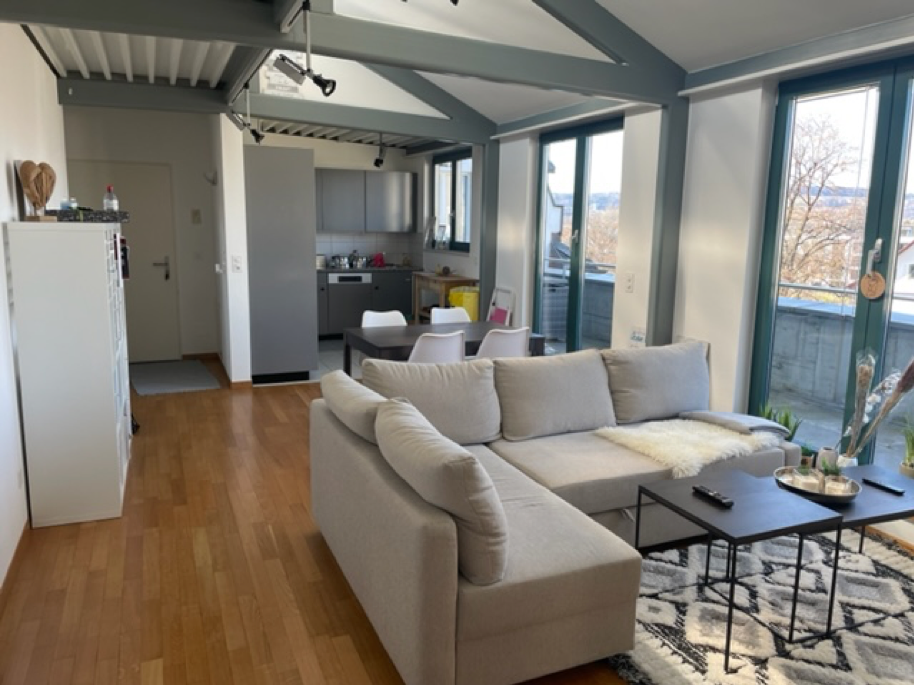 The flat is located in the heart of Uster ZH (third largest city in the canton of Zurich). It is 350 metres from Uster train station and Stadelhofen ZH is 11 minutes away by direct train. The flat is on the top floor of the building and has a narrow (1.5 metre wide) terrace all around. Working from home possible - 2 screen available. Limited to one year with the option to take over the apartment.