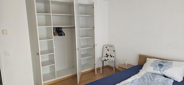 Zum Zimmer gehören ein kleiner privater Balkon sowie ein praktischer Einbauschrank. Ein eigenes WC steht zur Verfügung, die Dusche wird gemeinsam genutzt. Ein Garten kann mitbenutzt werden und lädt zum Verweilen im Grünen ein.