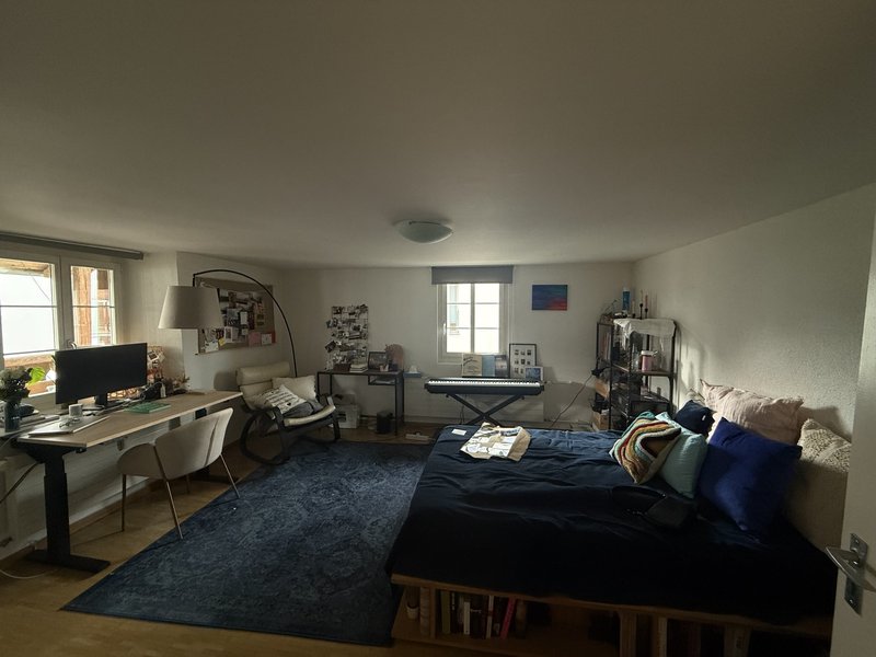 Das grosszügige WG-Zimmer bietet viel Platz zum Wohlfühlen, Arbeiten oder Entspannen. Die Lage verbindet Ruhe, Natur und eine hervorragende Anbindung perfekt miteinander.