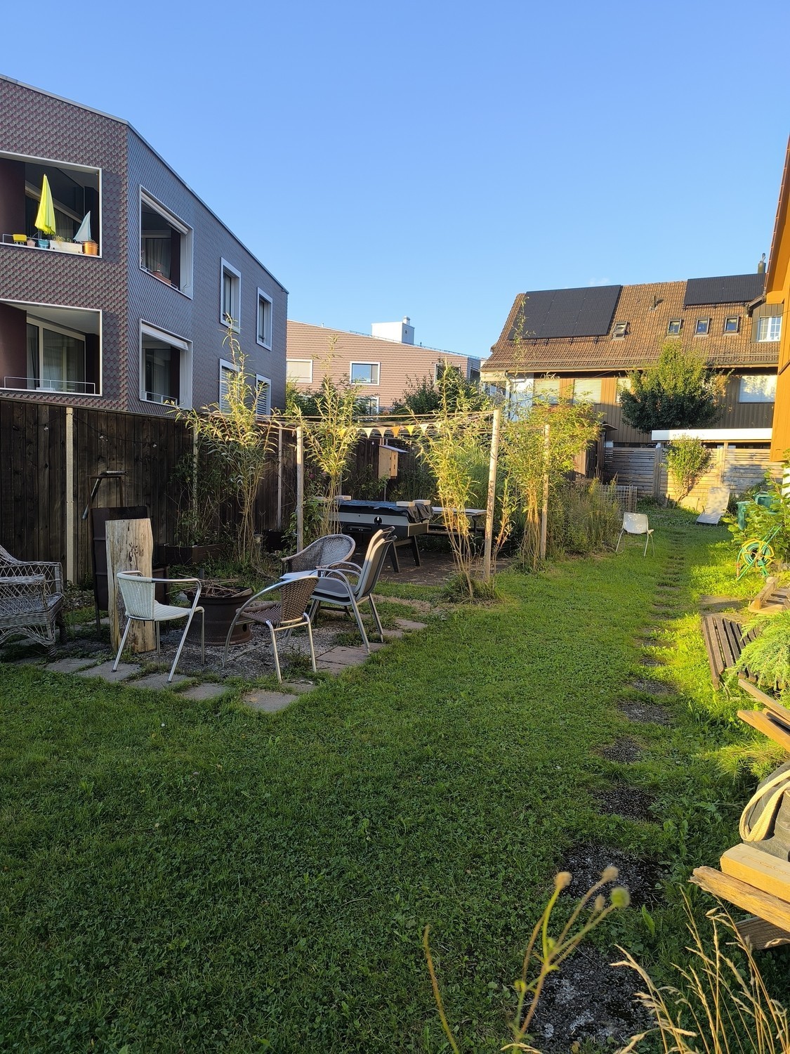 Wir sind fünf aufgestellte, unkomplizierte, unternehmungslustige und offene Menschen die sich in einem grossen und sehr besonders renovierten Bauernhaus ein liebevolles Zuhause geschaffen haben. Wir spielen und hören gerne zusammen Musik, Kochen und Essen oft gemeinsam, machen lustige Spieleabende am Cheminée, verwirklichen uns im Garten und laden gerne Freunde zu uns in die WG ein.