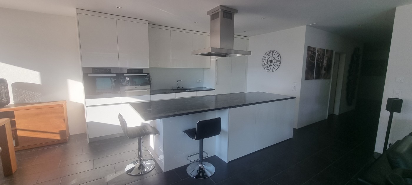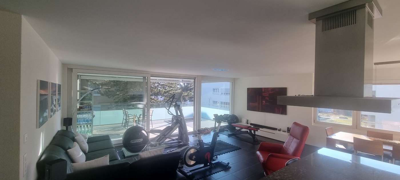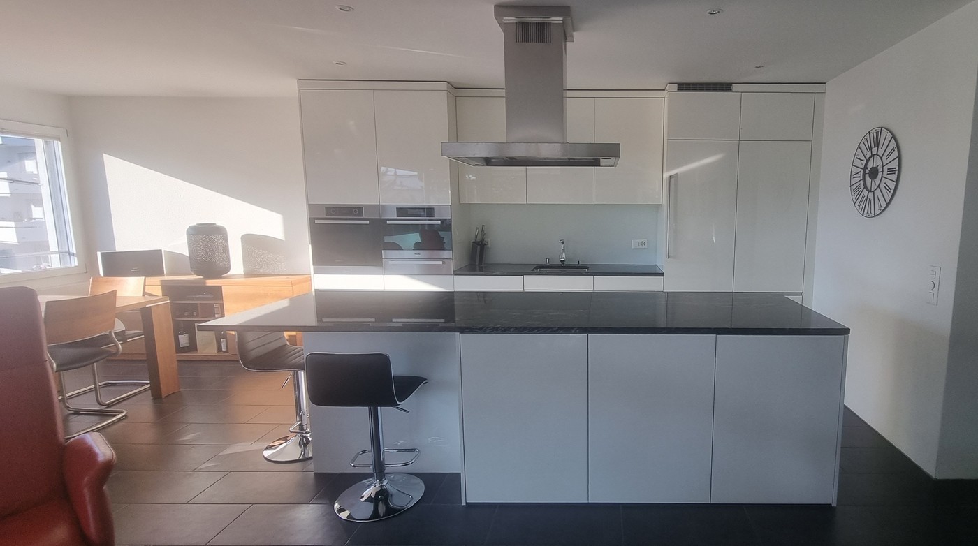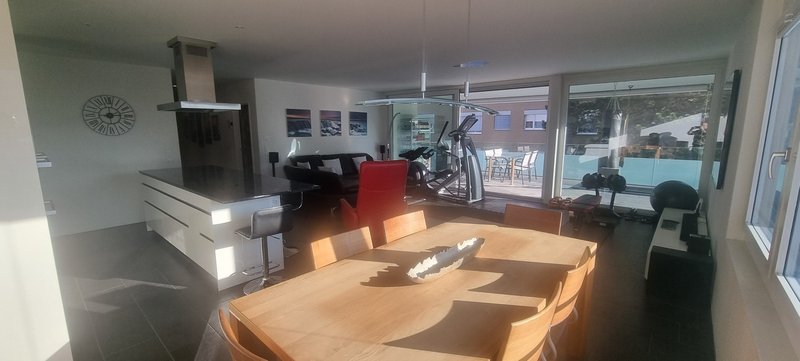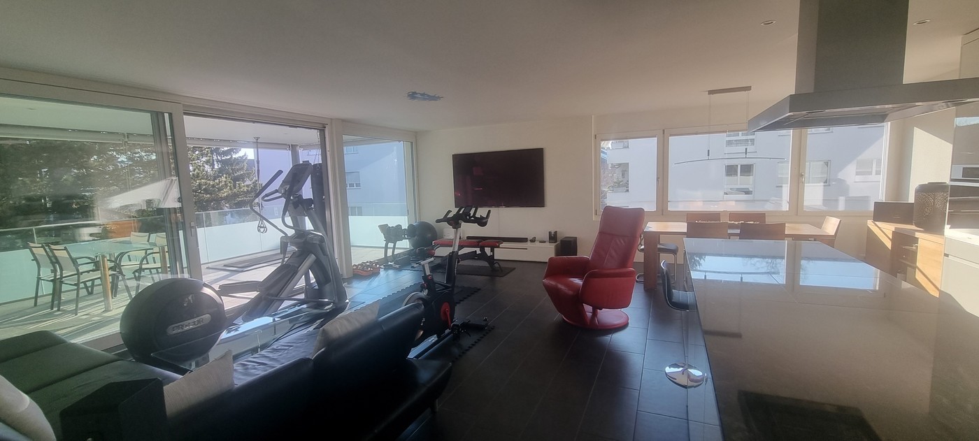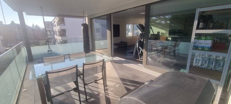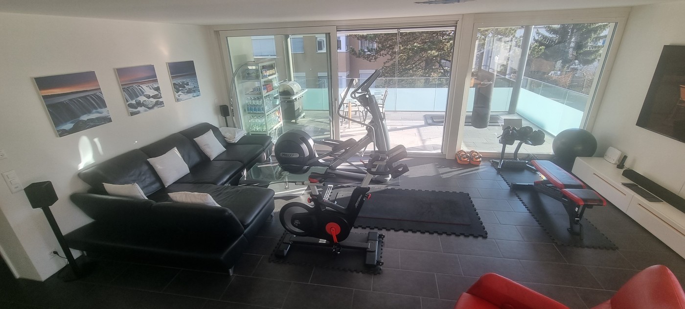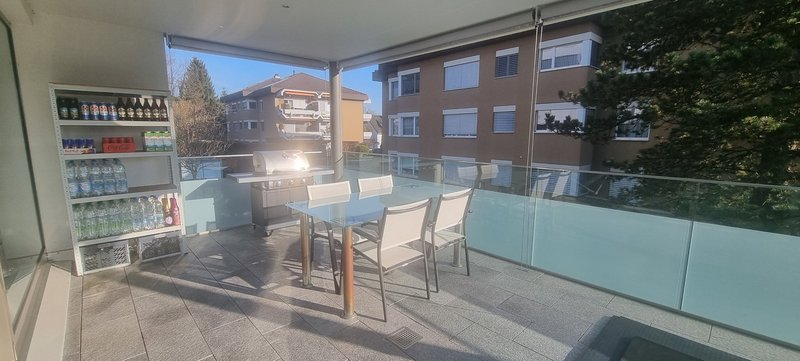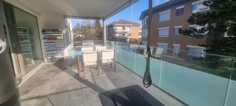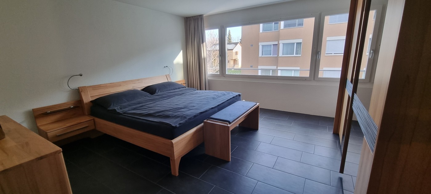 This ultra-modern, furnished 4 ½ room apartment with a living area of 150m² (1’615 sq ft) is in a very quiet and child-friendly location in Rapperswil-Jona. The property was built in December 2013. The apartment impresses with its generously designed living spaces and the large, northwest-facing, covered balcony. The modern kitchen with cooking island (oven and steamer) and the light-flooded living area invite you to linger. The entrance leads you past the guest bathroom (toilet, shower, washbasin, as well as WM/TU) into the open dining area. The master bedroom is adjacent to the living area. It is spacious, has its own bathroom, and has the same flooring as the living room. Adjacent to it are two bedrooms. They are suitable as a children's room, guest room, fitness room and/or study. In summer you can enjoy the evening sun on the balcony. In the basement, in addition to the underground garage, there is a technical room, a shelter, as well as a bicycle & stroller storage room. Each apartment also has its own large basement section. Cars and motorcycles are led from the street in the southeast area of the property directly into the underground garage. Direct access leads to the staircase with elevator. In front of the front door you have two bus stops, from where you can take bus lines 885 and 994 to either the Rapperswil or Kempraten train station, with regular City railroad connections. The proximity to schools, train stations as well as the city centre make the residential location particularly attractive. The various recreational areas are right on your doorstep and can be reached on foot, by bike or by public transport in no time. After only a few minutes' walk you can stroll along the lake or boardwalk.