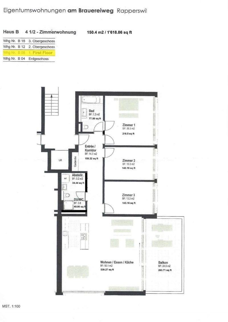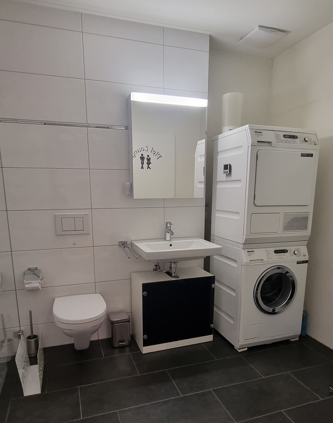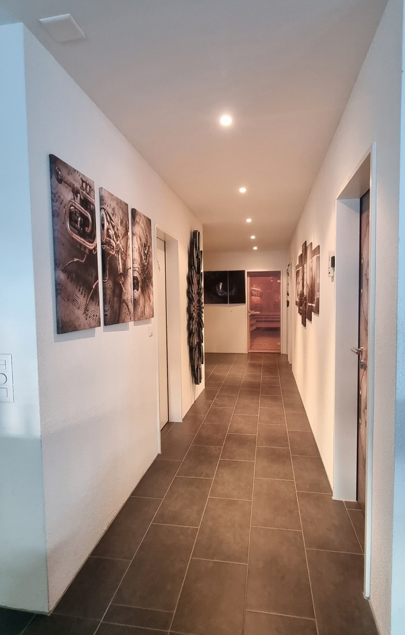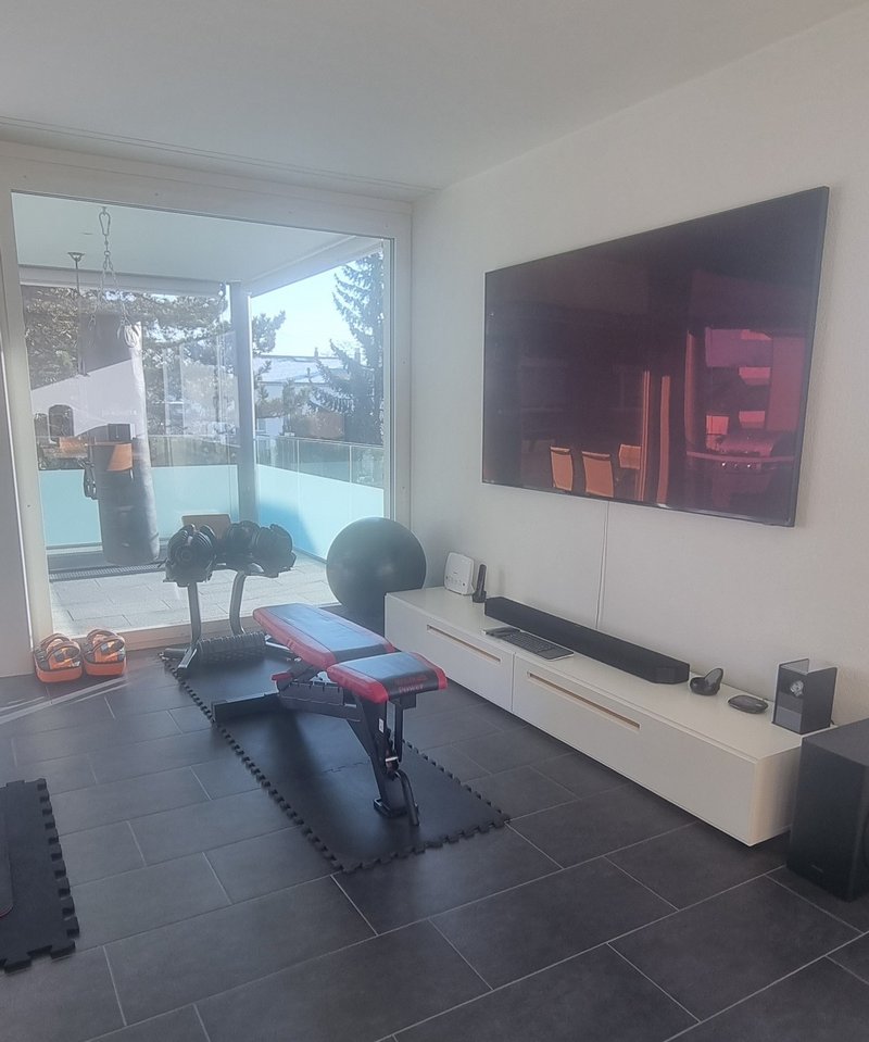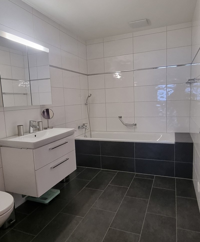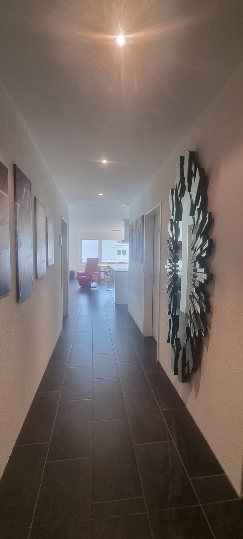 This ultra-modern, furnished 4 ½ room apartment with a living area of 150m² (1’615 sq ft) is in a very quiet and child-friendly location in Rapperswil-Jona. The property was built in December 2013. The apartment impresses with its generously designed living spaces and the large, northwest-facing, covered balcony. The modern kitchen with cooking island (oven and steamer) and the light-flooded living area invite you to linger. The entrance leads you past the guest bathroom (toilet, shower, washbasin, as well as WM/TU) into the open dining area. The master bedroom is adjacent to the living area. It is spacious, has its own bathroom, and has the same flooring as the living room. Adjacent to it are two bedrooms. They are suitable as a children's room, guest room, fitness room and/or study. In summer you can enjoy the evening sun on the balcony. In the basement, in addition to the underground garage, there is a technical room, a shelter, as well as a bicycle & stroller storage room. Each apartment also has its own large basement section. Cars and motorcycles are led from the street in the southeast area of the property directly into the underground garage. Direct access leads to the staircase with elevator. In front of the front door you have two bus stops, from where you can take bus lines 885 and 994 to either the Rapperswil or Kempraten train station, with regular City railroad connections. The proximity to schools, train stations as well as the city centre make the residential location particularly attractive. The various recreational areas are right on your doorstep and can be reached on foot, by bike or by public transport in no time. After only a few minutes' walk you can stroll along the lake or boardwalk.