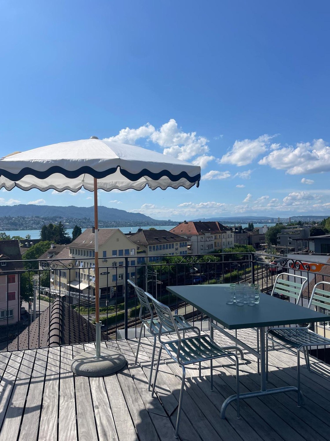 Private, furnished rooftop terrace with views over Zurich and the lake