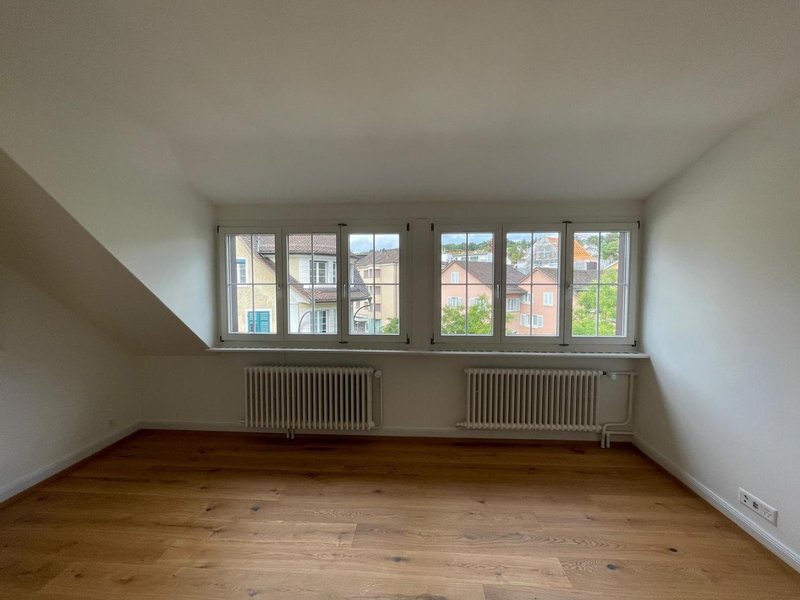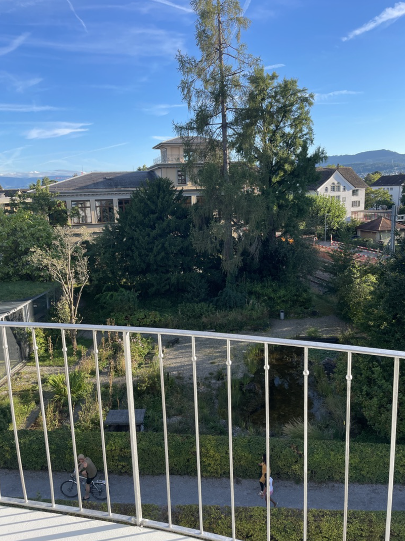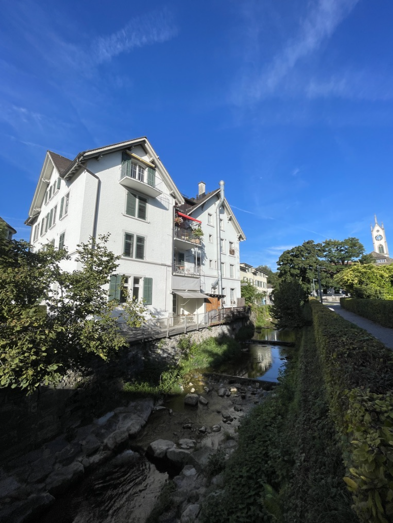 In der 4.5-Zimmer-Wohnung (100m2) erwarten dich lichtdurchflutete Räume, schöne Aussicht aus allen Zimmern und das Rauschen des Bachs, der vorbeifliesst. Das Highlight? Die private Dachterrasse mit Seeblick – perfekt für den Morgenkaffee oder entspannte Sonnenuntergänge. Der See liegt nur 3 Gehminuten entfernt – ideal zum Schwimmen, Joggen oder einfach die Seele baumeln lassen.