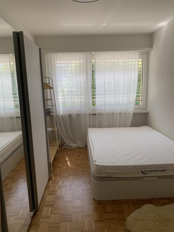 A fully furnished room (ca 10 m²) is available in my non-smoking 3-room apartment in tax-friendly Zollikon, ZH – ONLY for a weekly commuter or professional working/studying in Zurich for ONLY 2-4 days per week who values peace, greenery, and comfort. The flat is not available at the weekend for private reasons.