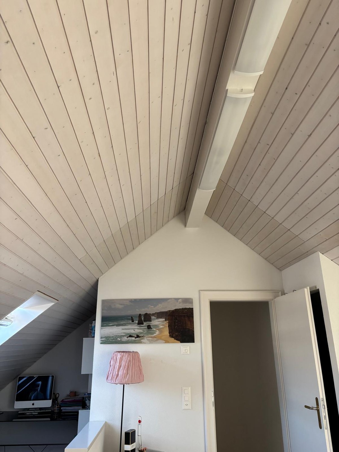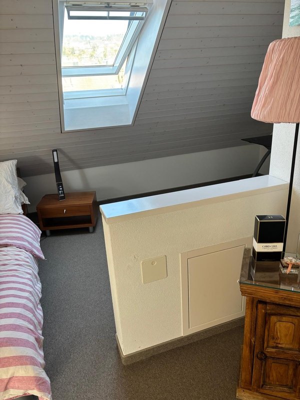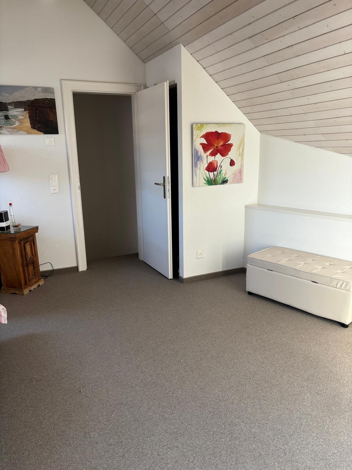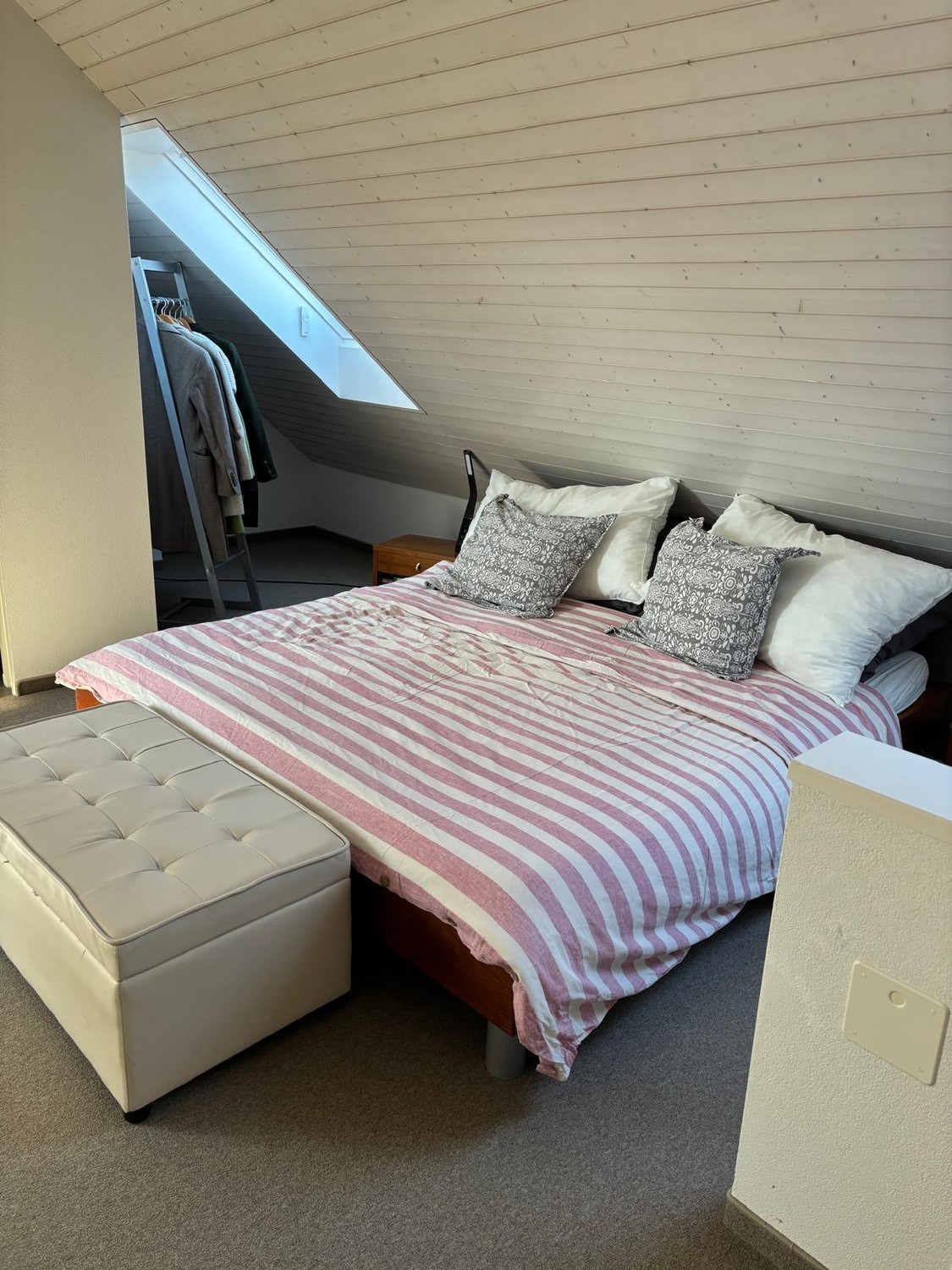 A bright, fully furnished attic room of approximately 35 m², separate from the rest of the apartment. The room includes a private bathroom, separate from the rest of the apartment, and a walk-in wardrobe.