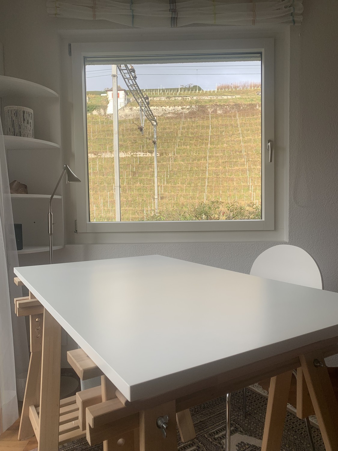 Ich gebe mein Zimmer ab, da ich beruflich naeher an meinen Arbeitsplatz ziehen mochte. Das Haus liegt in einer sehr ruhigen Umgebung, umgeben von Natur, mit wunderschonen Spazierwegen und Weinbergen direkt hinter dem Haus.