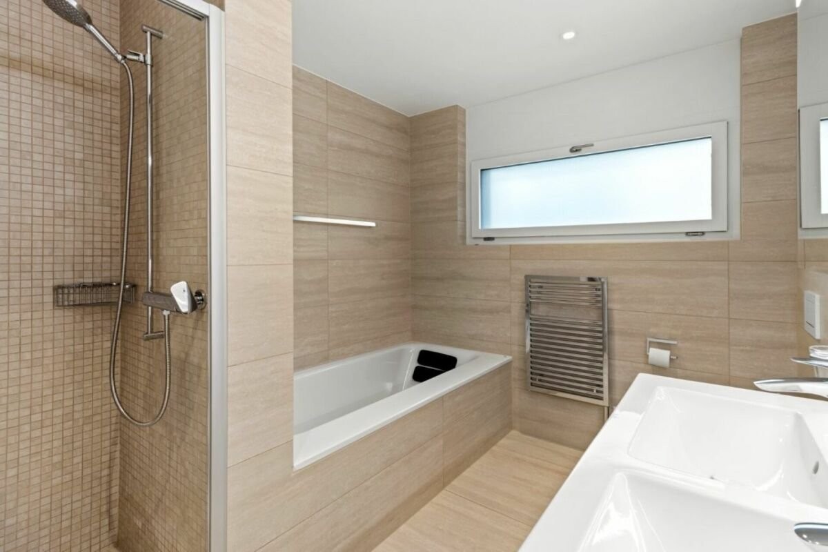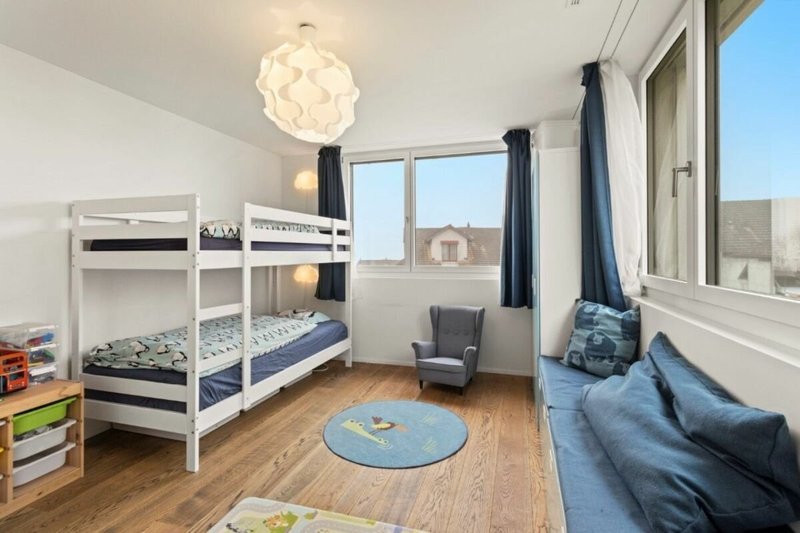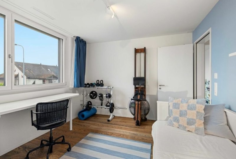 Der grosszügige Wohn- und Essbereich mit offener, voll ausgestatteter Küche bietet viel Platz und Komfort. Dank der grossen Fensterflächen und der vorteilhaften Ausrichtung wirkt die Wohnung besonders hell und freundlich. Zur Ausstattung gehören zwei Badezimmer - eines mit Dusche sowie ein weiteres mit Dusche und Badewanne - sowie ein zusätzlicher Raum, der sich flexibel als Homeoffice, Gästezimmer oder Fitnessbereich nutzen lässt.