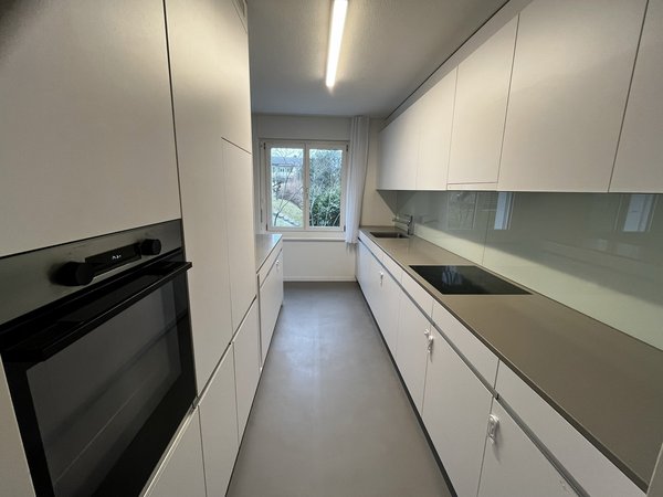 Die Wohnung bietet Ihnen eine offene Küche mit einem Glaskeramik Kochfeld sowie weiteren modernen Küchengeräten der Marke V-Zug.