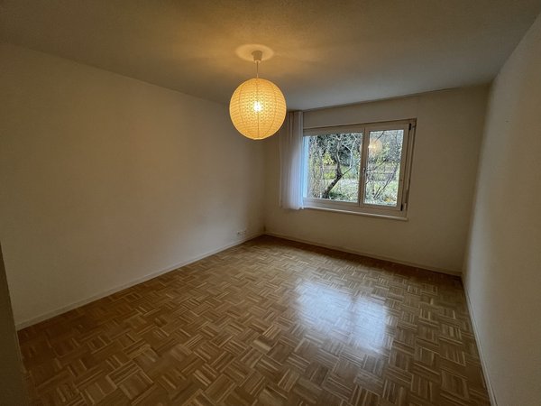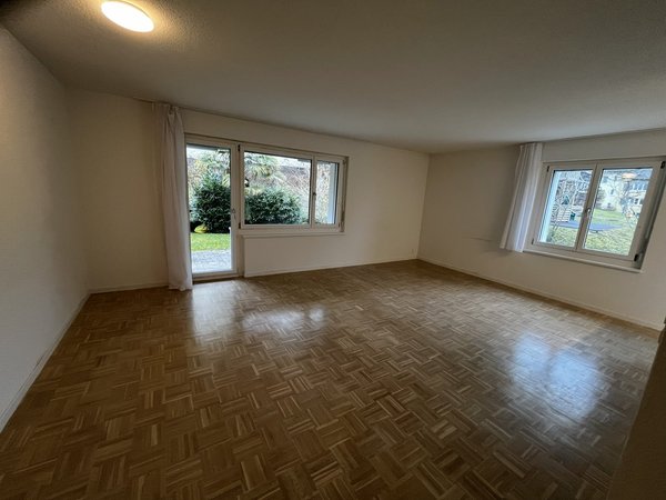 Das Wohnzimmer besticht durch seine Grösse und den Zugang zum Gartensitzplatz (Grillieren ist nur mit Elektrogrill erlaubt). Alle Wohnräume sind mit einem Eichenparkettboden ausgelegt.