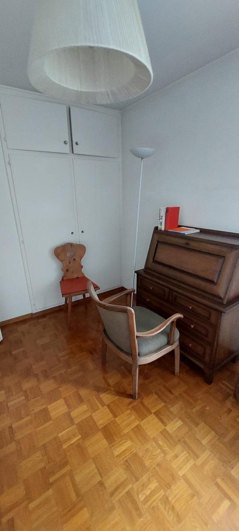 The room has beautiful parquet flooring, practical built-in wardrobes, and a calm, cosy feel. The house itself offers a lot more space than your typical city flat, with a large garden, outdoor area, and a peaceful green setting with a great view.