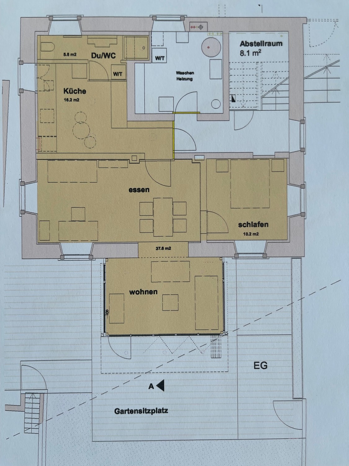 grosses Wohnzimmer mit Falttüre zum Sitzplatz