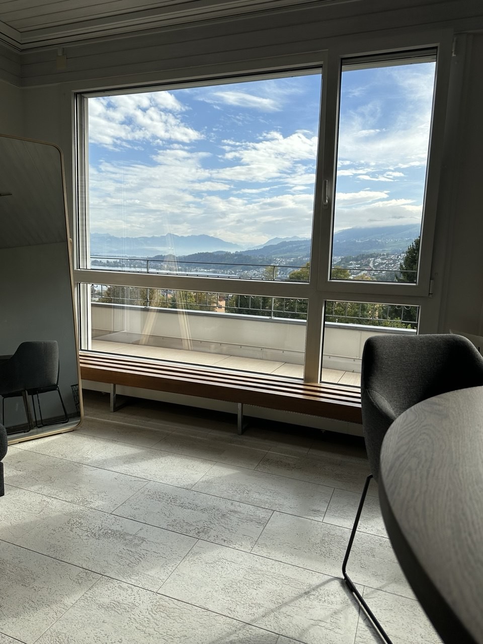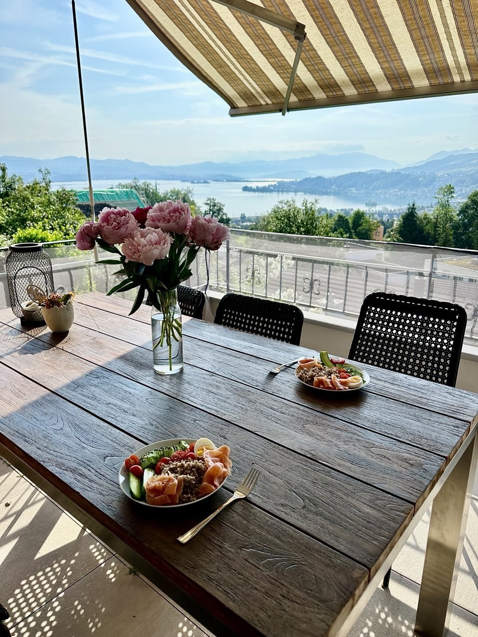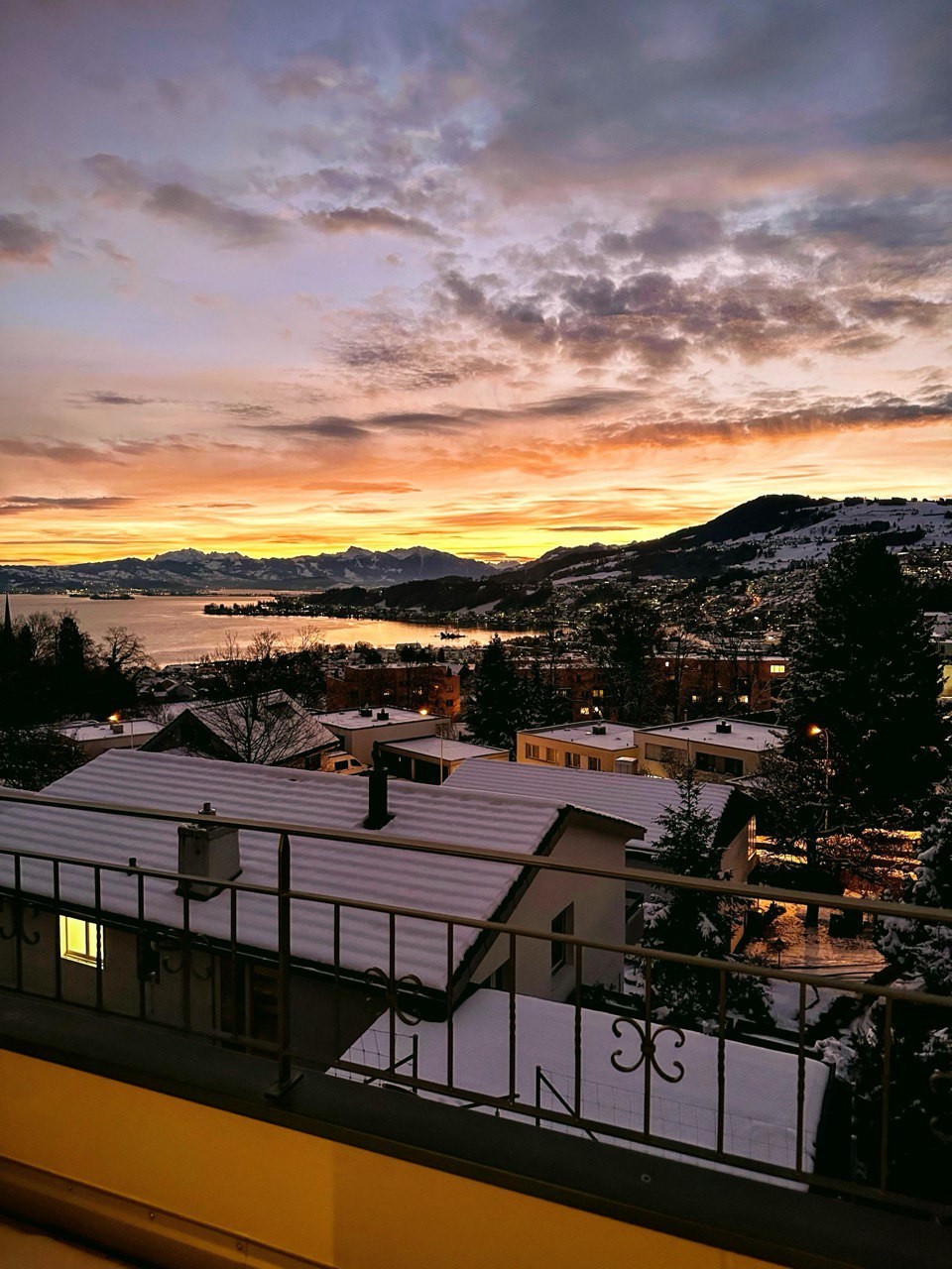 Private Balcony & Roof Terrace: Multiple outdoor spaces offering spectacular panoramic views of Lake Zurich and the surrounding mountains