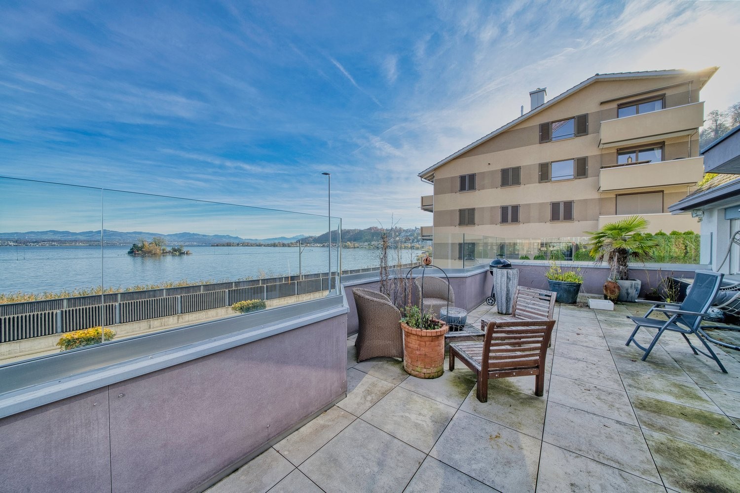 Diese charmante und lichtdurchflutete möblierte Wohnung besticht durch ihre einzigartige Lage direkt am See und bietet Wohnen auf höchstem Niveau. Von mehreren Zimmern sowie der grosszügigen Terrasse aus geniessen Sie einen traumhaften Blick über das Wasser und die Alpen - ein Ausblick, der jeden Tag zu etwas Besonderem macht.