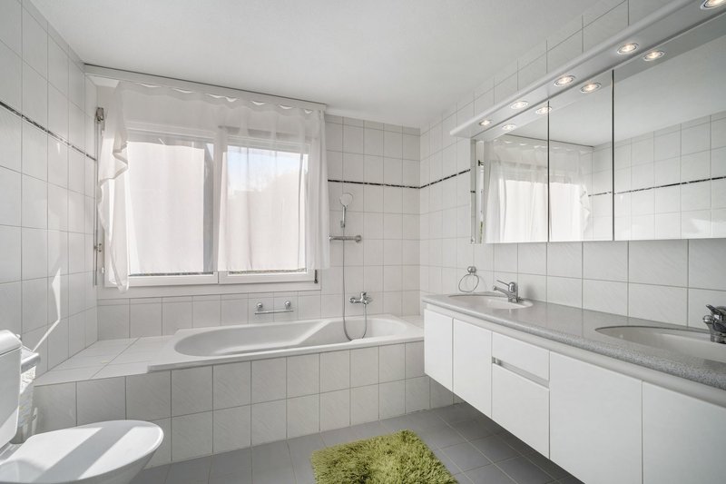 Die Küche ist modern und funktional ausgestattet, mit ausreichend Arbeitsfläche und Stauraum - ideal für alle, die gerne kochen. Das Badezimmer überzeugt mit Doppelwaschbecken, Badewanne und gepflegter Ausstattung.