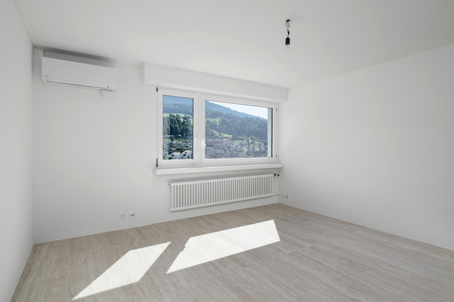 Dieses exklusive Penthouse zur Miete befindet sich im 15. Stock und bietet eine ruhige, zentrale Lage in Pfäffikon SZ mit unverbaubarer