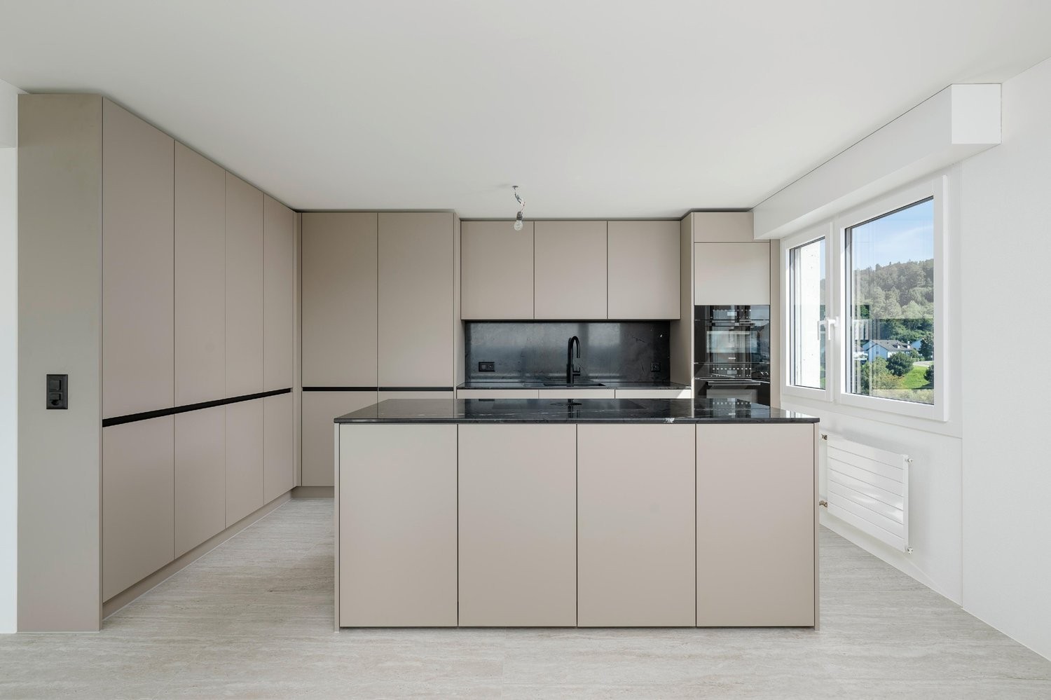 Der grosszügige Eingangsbereich führt in das offene Wohn und Esszimmer mit moderner Küche, Quooker, Steamer, Backofen und grosser Kochinsel. Hier verbinden sich elegantes Design und Funktionalität auf höchstem Niveau.