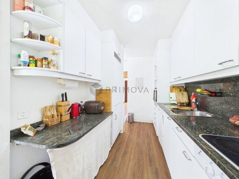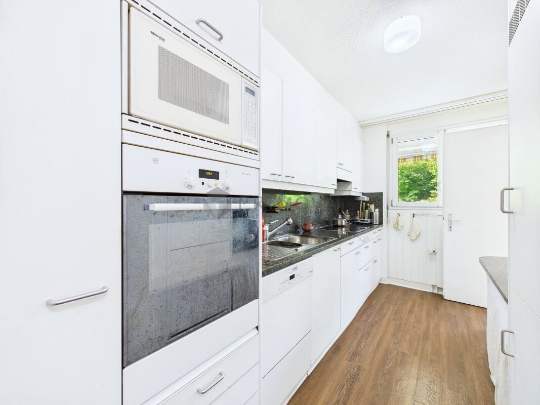 Die Lage überzeugt durch die traumhafte Aussicht und eine hervorragende Anbindung an alles, was den Alltag angenehm macht. Im Inneren erwartet Sie ein grosszügiger, lichtdurchfluteter Wohnbereich, der zum Verweilen und Entspannen einlädt. An kühleren Abenden sorgt das Cheminée für eine behagliche und romantische Stimmung. Die Küche bietet durchdachten Stauraum und macht das Kochen zum Vergnügen. Praktische Details wie der Geschirrspüler, der Einbauschrank und die Garderobe im Korridor sorgen für Ordnung und Komfort.