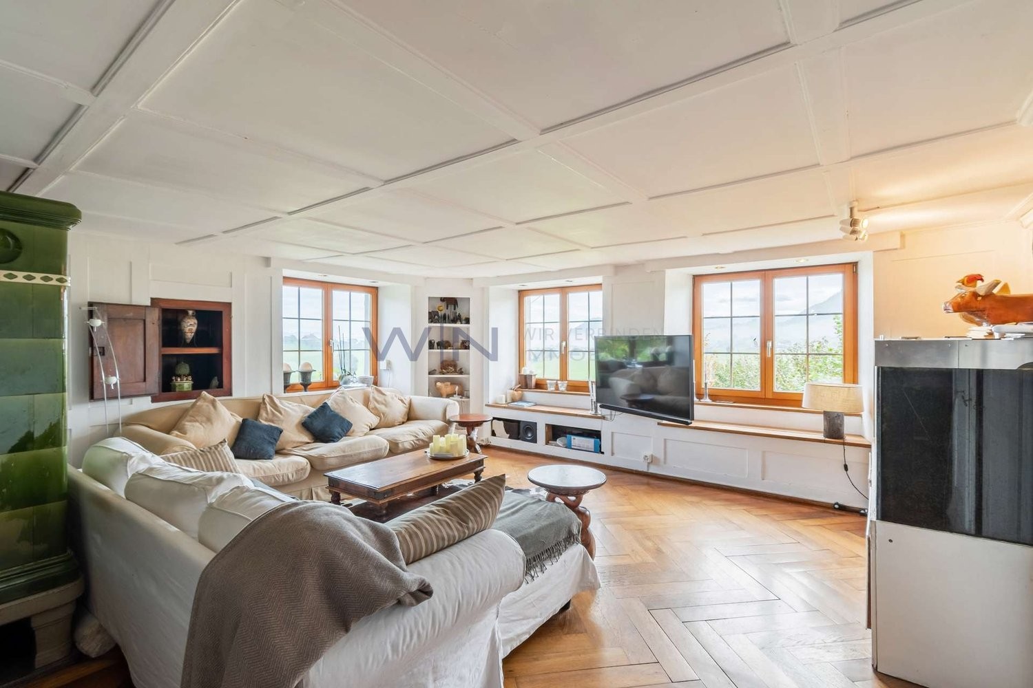 + ANNEHMLICHKEITEN: teils hohe Decken, einzigartige Aussicht aus allen Zimmern, geräumiger Raum als Spielzimmer oder um Feste zu feiern, Kachelofen, zahlreiche Cheminées/Badezimmer, Terrasse, Weinkeller, WM/Tumbler, Keller, Reduit