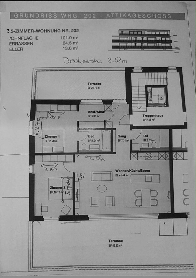 Per 01.06.2026 suchen wir eine/n Nachmieter/in für unsere schöne 3.5-Zimmer Attika-Wohnung in Heiligkreuz (Mels). Die Wohnung verfügt über ein Schlafzimmer mit direktem Badezimmer, zwei Balkone, Waschmaschine und Tumbler in der Wohnung, Lift, grosser eigener Keller sowie einen Tiefgaragenplatz.