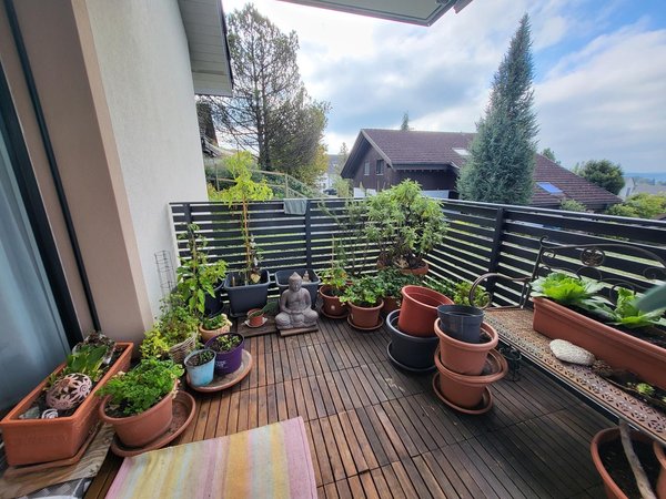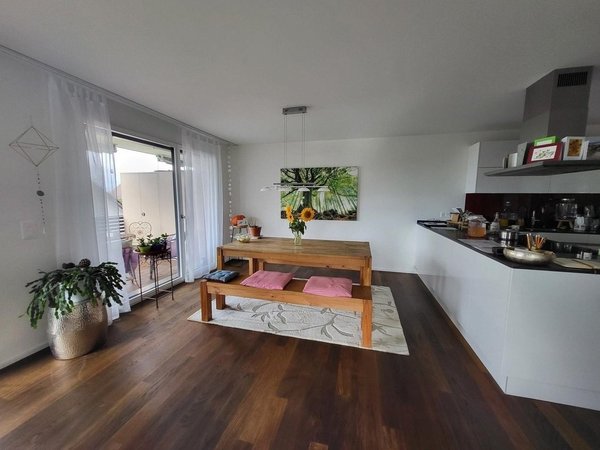 In einer ruhigen gepflegten Überbauung (seit 2016), vermieten wir ab 1. Dez 25 oder nach Vereinbarung, diese helle sehr ruhige komfortable Wohnung, 3 Min zur Autobahnzufahrt, 3 Min zum Bus, in 3 Min in der Natur