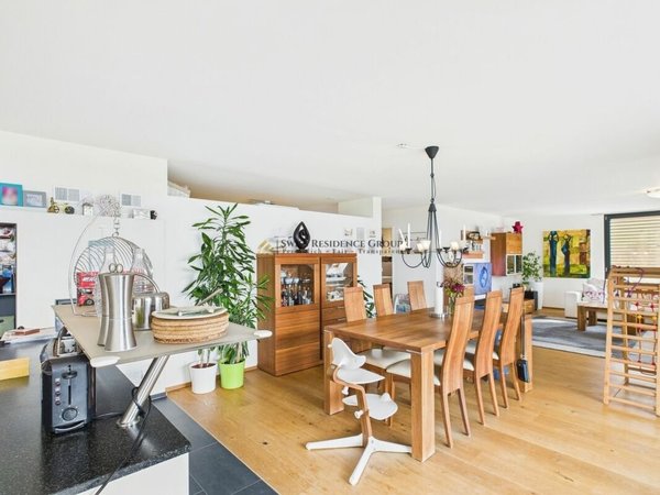 Auf 157 m² Wohnfläche überzeugt der durchdachte Grundriss mit offenem Wohn-/Essbereich (ca. 67 m²), Cheminée, lichtdurchfluteten Räumen und direktem Zugang zum Balkon mit Südwest-Ausrichtung.