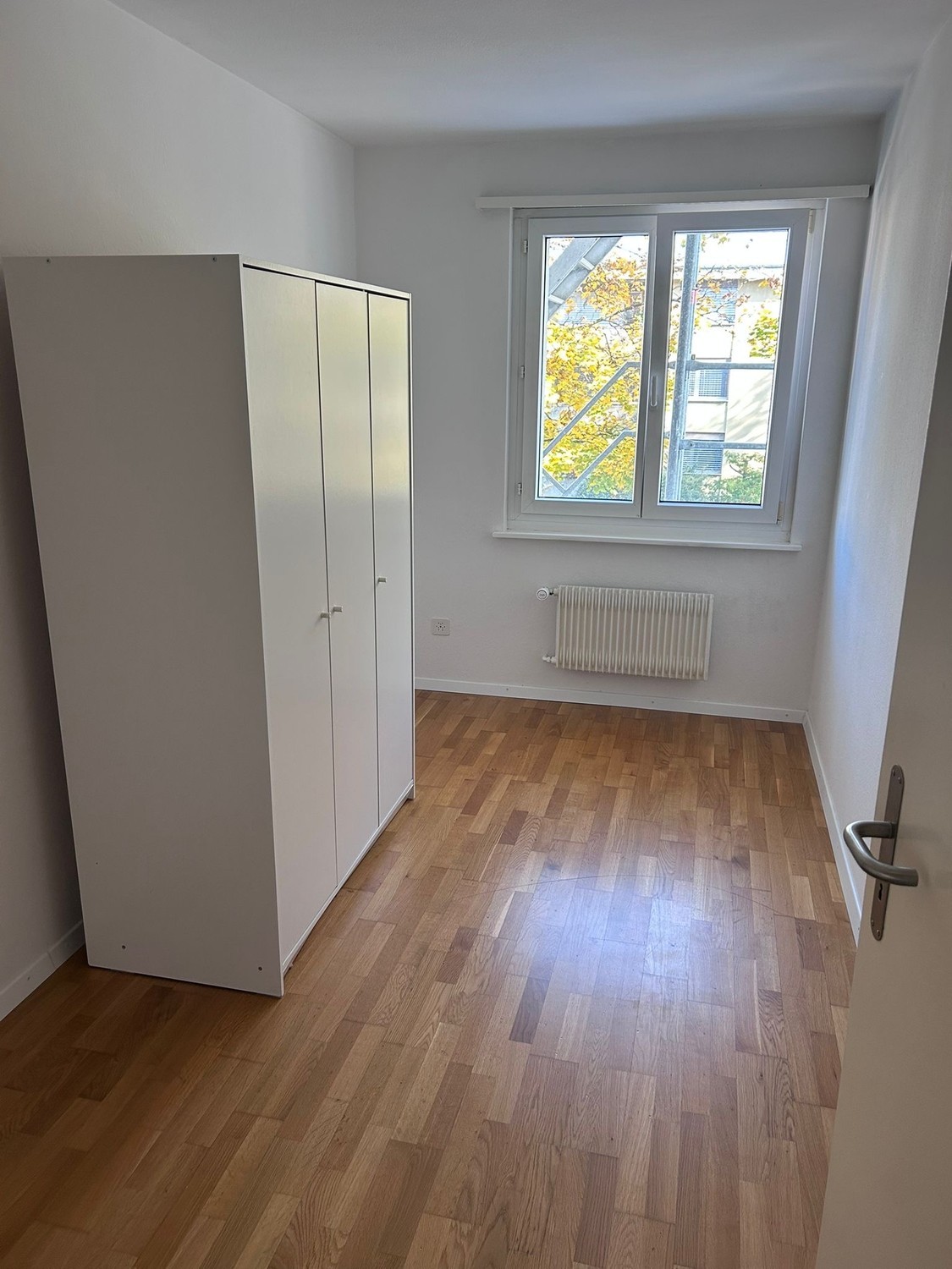 Das Zimmer ist ca. 9 m² gross und verfügt über einen Kleiderschrank (falls nicht gewünscht, kann dieser auch entfernt werden). Trotz der Grösse bietet das Zimmer Platz für Bett, Schreibtisch und Schrank.