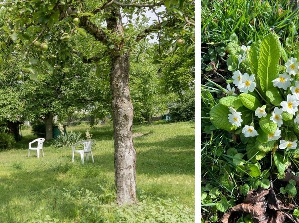 Alte Obstbäume, eine Pergola, eine Grillstelle und der parkähnliche Garten laden zum Entspannen, Geniessen oder zum gemeinsamen Beisammensein ein.