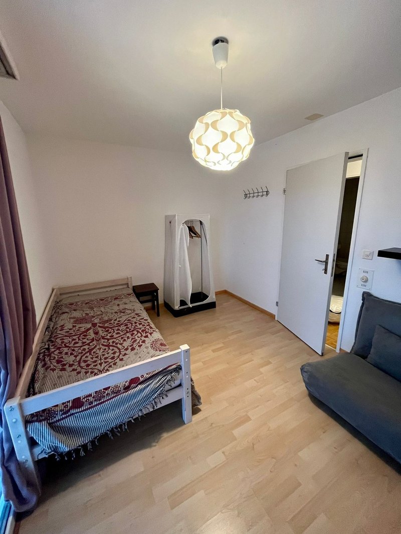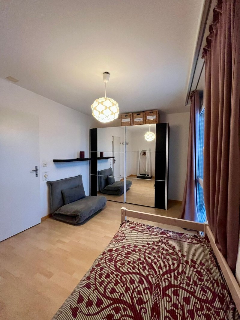 Meine Tochter 21 und ich 55w suchen eine Person, die bereits einen Wohnsitz in der Schweiz hat und hier in der Umgebung arbeitet. Das Zimmer ist NUR Montag-Freitag zu vermieten. Oder für 1 Monat kann das Zimmer Vollzeit gemietet werden, dann kostet es Fr. 900.- Eigene Dusche sowie Bettwäsche, Badetücher etc alles vorhanden, auch die Reinigung des Zimmers und der Dusche sind im Preis inbegriffen. Wir sind ein Vegi-Haushalt, das Kochen von Fleisch ist in den Pfannen nicht erlaubt. Wir arbeiten beide 100%, tagsüber ist niemand in der Wohnung. Wir freuen uns auf eine unkomplizierte, ruhige Person, das sind wir auch :-).