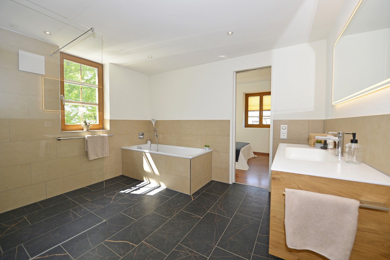 Praktische Ausstattung: Eigene Waschmaschine und Tumbler, eigener Eingang, Gefühl eines Einfamilienhauses