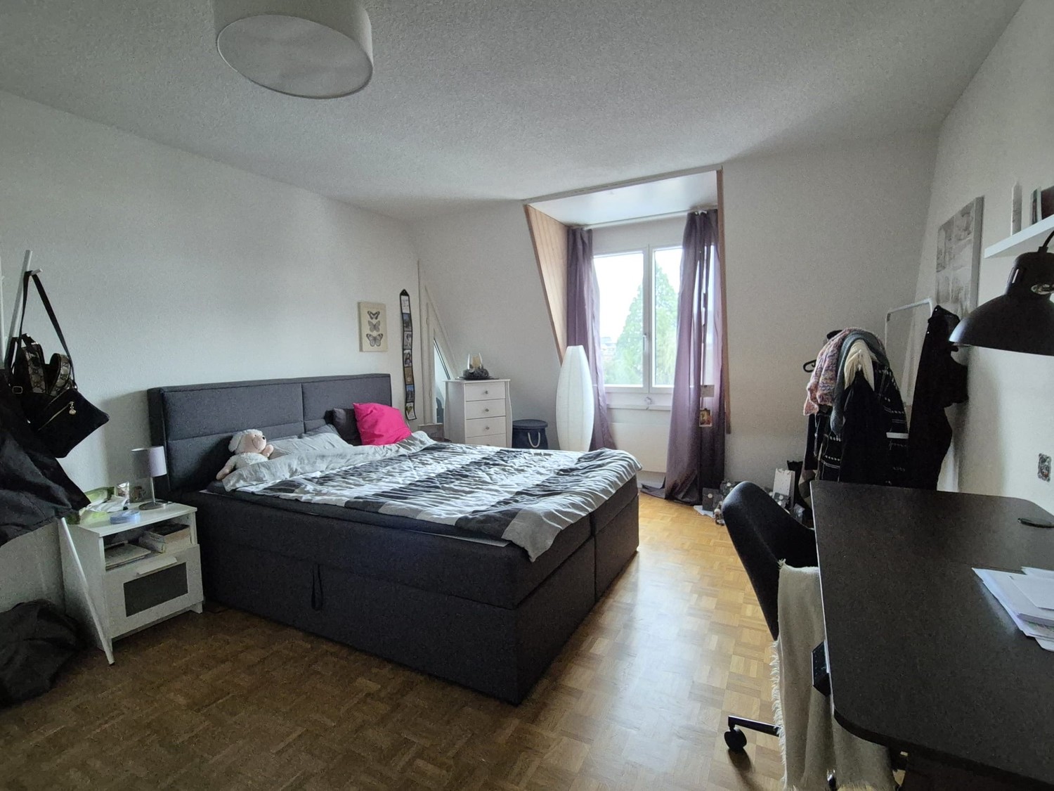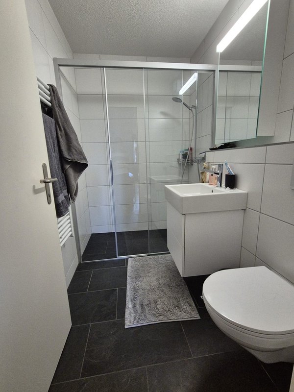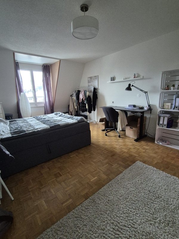 Dein Zimmer ist das grösste in der Wohnung, somit hast du genug Platz um es dir gemütlich zu machen. Du hast auch dein eigenes Badezimmer, welches nur von deinem Zimmer aus zugänglich ist. Die Wohnung hat zudem eine grosse Wohnküche, ideal für gemeinsames Kochen und ein gemütliches Wohnzimmer für gemeinsame Filmabende. Der Balkon mit wunderschönem Blick ins Grüne bietet sich im Sommer gut für einen Grillplausch an.