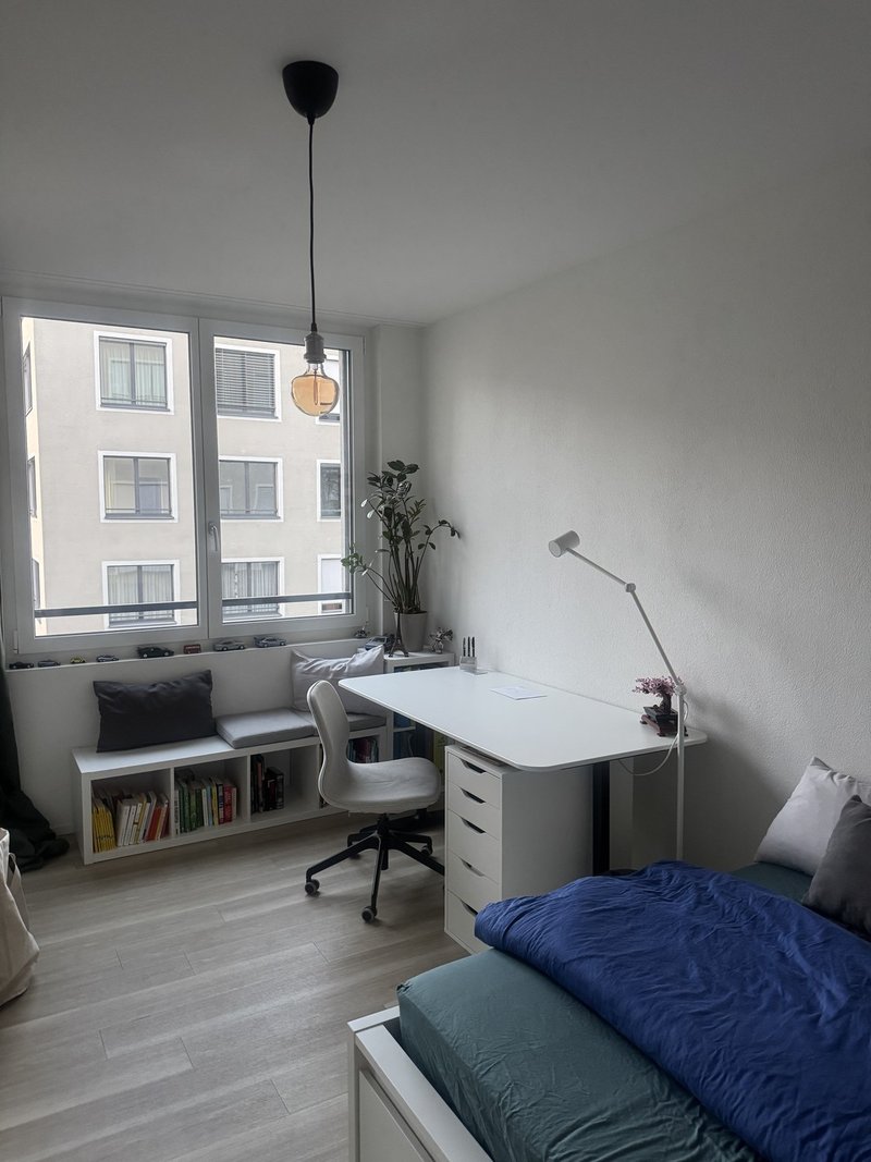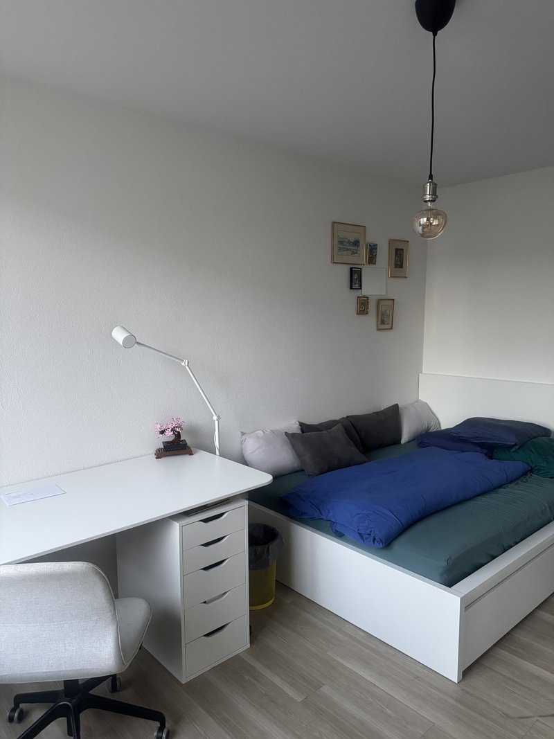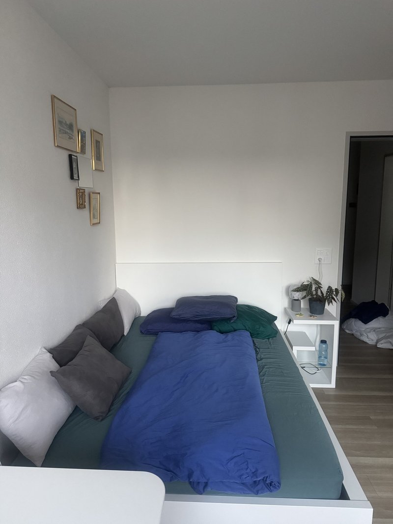 Unsere Wohnung ist vollständig ausgestattet und bietet neben einer modernen Küche ein grosszügiges Wohnzimmer sowie 2 Loggias, zu einer hättest Du direkten Zugang. Die Mitbenützung von Waschmaschine/Tumbler, welche sich in der Wohnung befindet ist möglich.