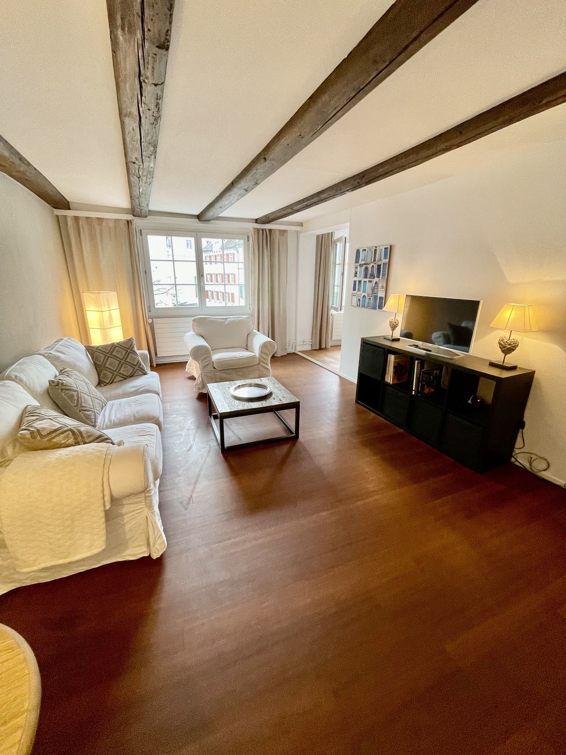 This high-quality, fully furnished business apartment is located in a charming, listed historic building near the Katharinenkloster, right in the heart of St. Gallen’s old town.