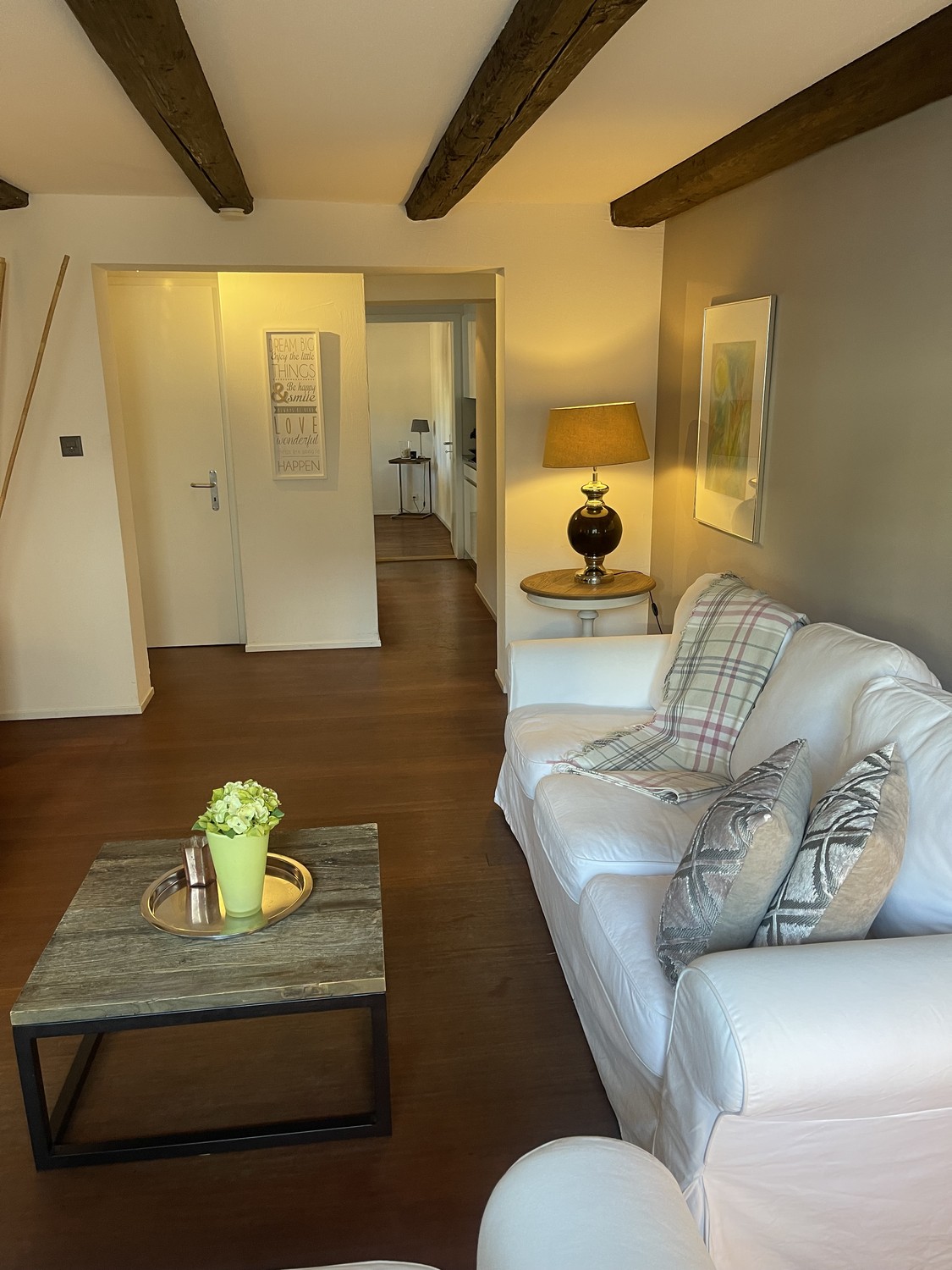 Die Wohnung vereint historisches Ambiente mit modernem Design: ein harmonisches Farbkonzept, hochwertige Massivholzböden sowie einladende Möblierung schaffen eine elegante Atmosphäre mit Wohlfühlgarantie. Das grosszügige, offene Raumkonzept wurde gezielt für anspruchsvolle Geschäftsleute, längere Business-Aufenthalte und Homeoffice-Nutzung konzipiert.