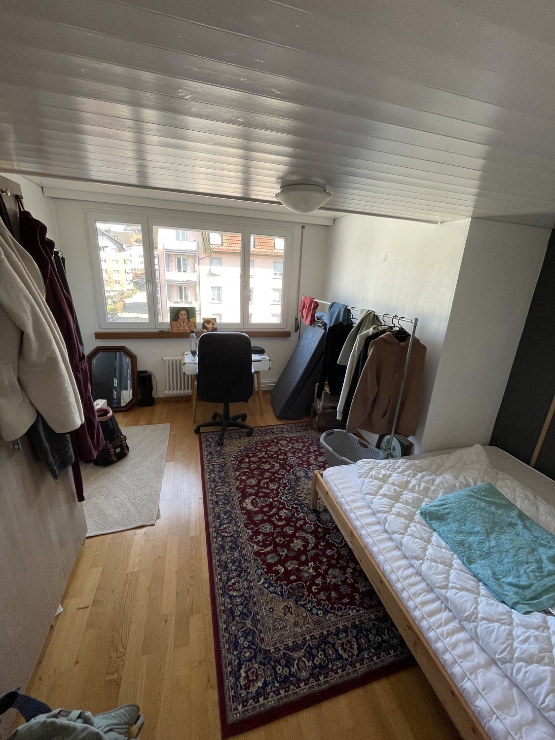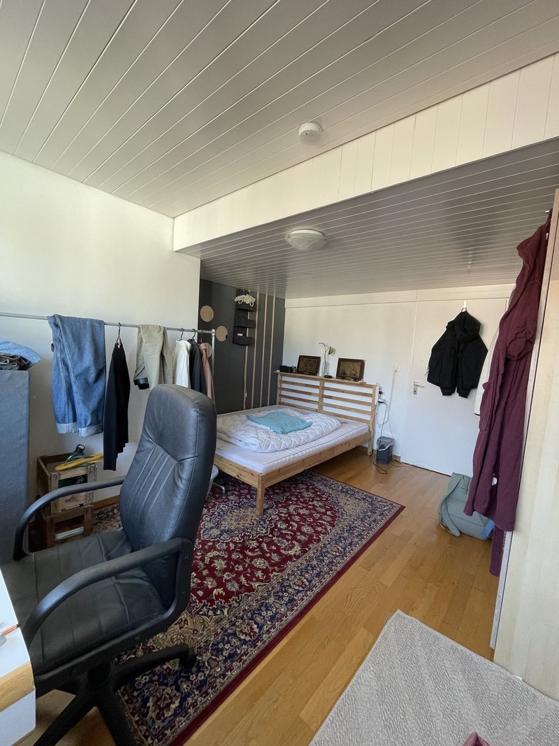 Da ich ausziehe, wird mein schönes 16 m2 grosses Zimmer in unserer 3,5-Zimmer-Wohnung frei. Das Zimmer ist unmöbliert, das Bett inkl. Matratze kann bei Interesse gerne gegen einen Abschlag übernommen werden.