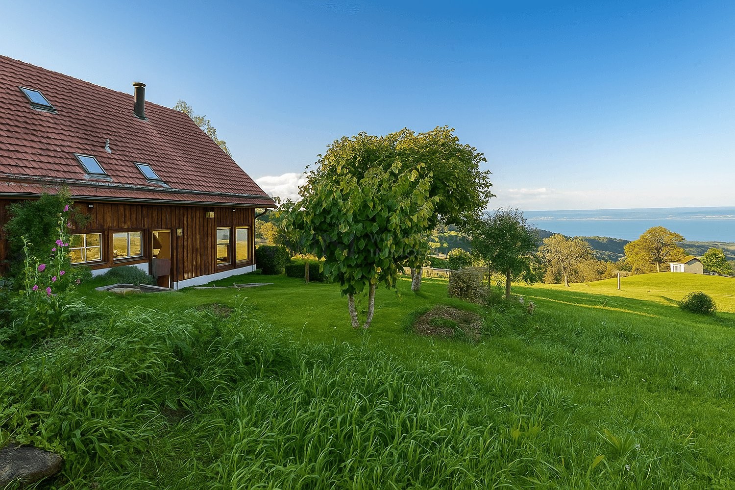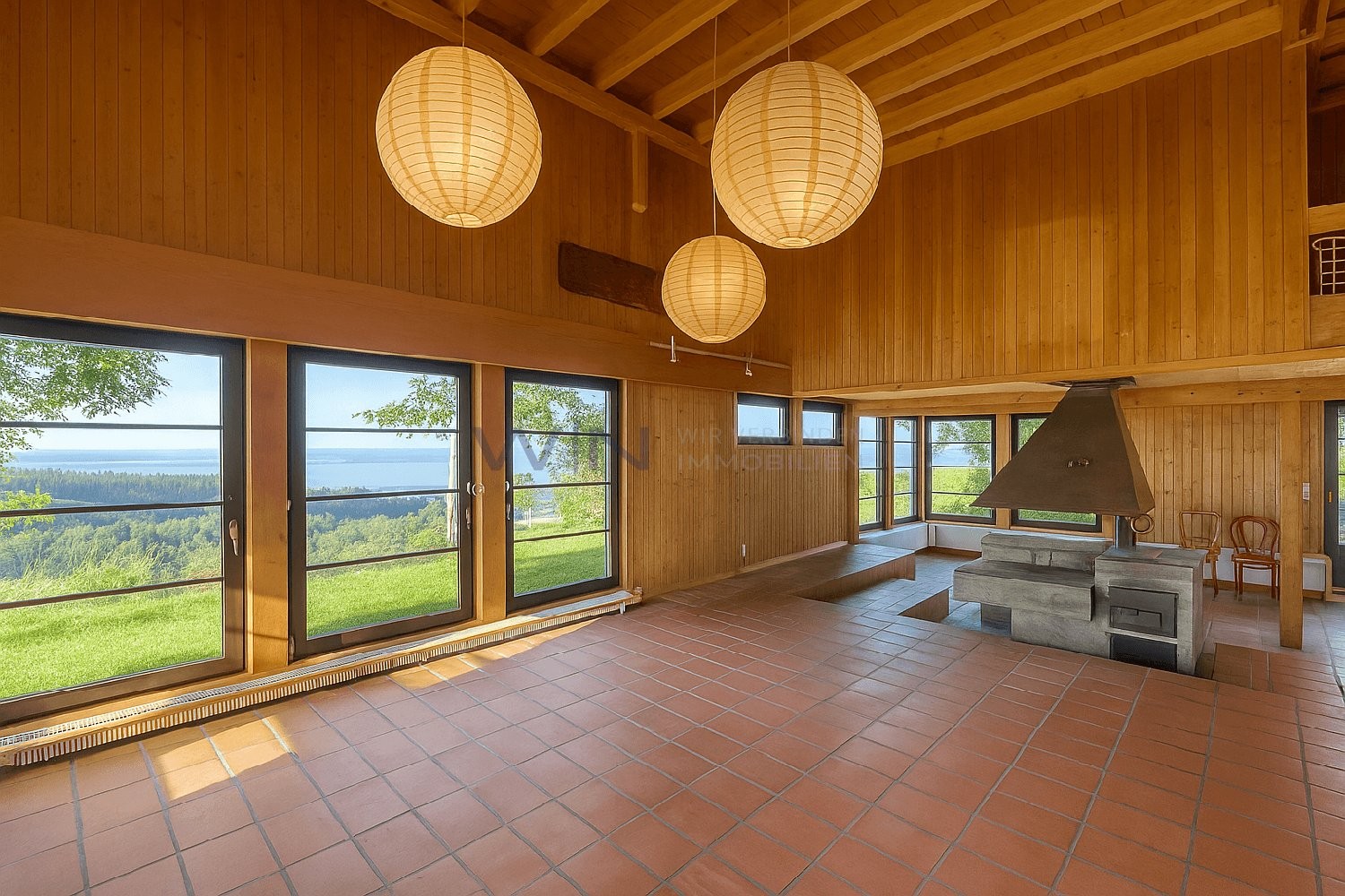Im neuen Anbau lädt der lichtdurchflutete Wohnbereich mit offenem Cheminée zu gemütlichen Abenden ein. Von hier aus öffnet sich der direkte Zugang in den grosszügigen Garten mit fast 1?500 m² ? ein Paradies, in dem man Ruhe, Weitblick und Natur geniessen kann. Die herrliche Seesicht macht diesen Ort zusätzlich zu einem Rückzugsort, der jeden Tag ein Stück Feriengefühl vermittelt. Ob spielende Kinder, entspannte Sommerfeste oder einfach der Blick in die Ferne ? dieser Garten ist mehr als Aussenfläche, er ist ein Stück Lebensqualität.