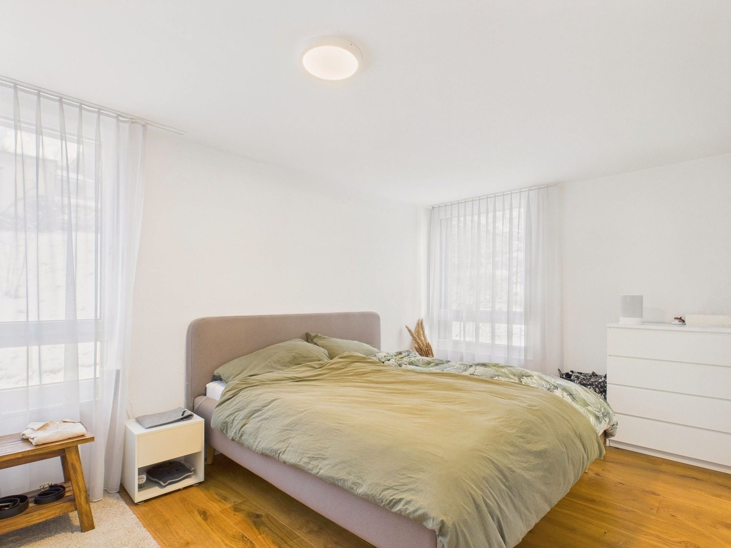 Diese Immobilie aus dem Jahr 2021 präsentiert sich in einem exzellenten Zustand. Der exklusive Ausbaustandard zeugt von modernem Design und hochwertigen Materialien. Die gut entwickelte Region bietet eine Vielzahl von Annehmlichkeiten in der Nähe, darunter Restaurants, Einkaufsmöglichkeiten und Freizeiteinrichtungen. Die Bodenheizung sorgt für wohlige Wärme, während das Badezimmer direkt mit einem der Schlafzimmer verbunden ist und eine elegante Kücheninsel den Kochbereich ergänzt. Die Aussicht auf die imposanten Alpen trägt zusätzlich zum Charme dieser Wohnung bei.