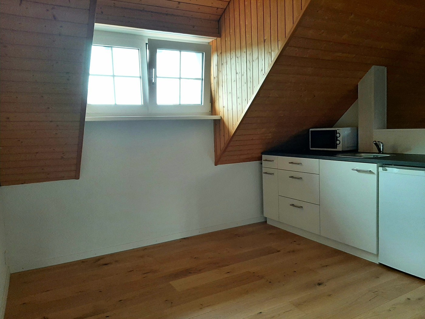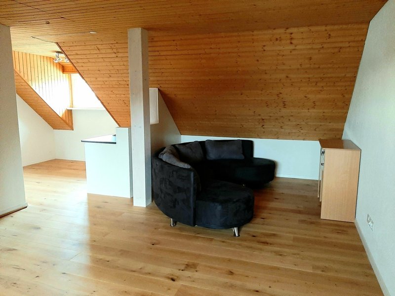 Kleine Küchenzeile im Zimmer. Möbiliert oder unmöbiliert zu haben. Zwei Fenster mit Weitsicht. Internet/WLAN mit TV Box. Grosse, moderne Küche, Waschraum und Sitzplatz zur Mitbenützung. Tiefgaragenplatz Miete nach Verfügbarkeit. Wir haben zwei Katzen und einen Hund alle sehr lieb und ruhig.