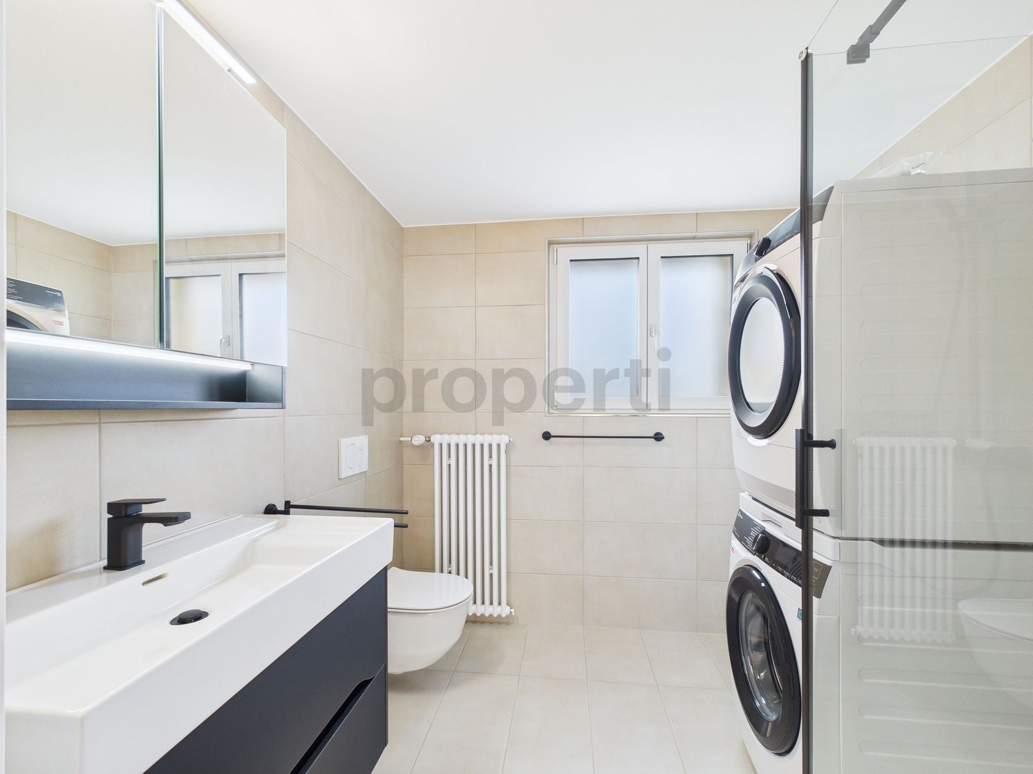 In einer ruhigen und gut entwickelten Region gelegen, besticht diese Wohnung durch ihre Modernität, Renovierung und zentrale Lage. Das hellichte Wohnzimmer lädt zum Verweilen ein, die renovierte Küche ist modern und funktional. Zwei gemütliche Schlafzimmer und ein gepflegtes Badezimmer bieten ausreichend Platz. Der Balkon lädt zum Entspannen ein, ein separates Reduit sowie ein Keller sorgen für zusätzlichen Stauraum. Mit einem Parkplatz im Freien ist auch die Parkierung kein Problem. Einkaufsmöglichkeiten (397m), Schulen (474m) und Verkehrsanbindungen (568m) sind bequem erreichbar.