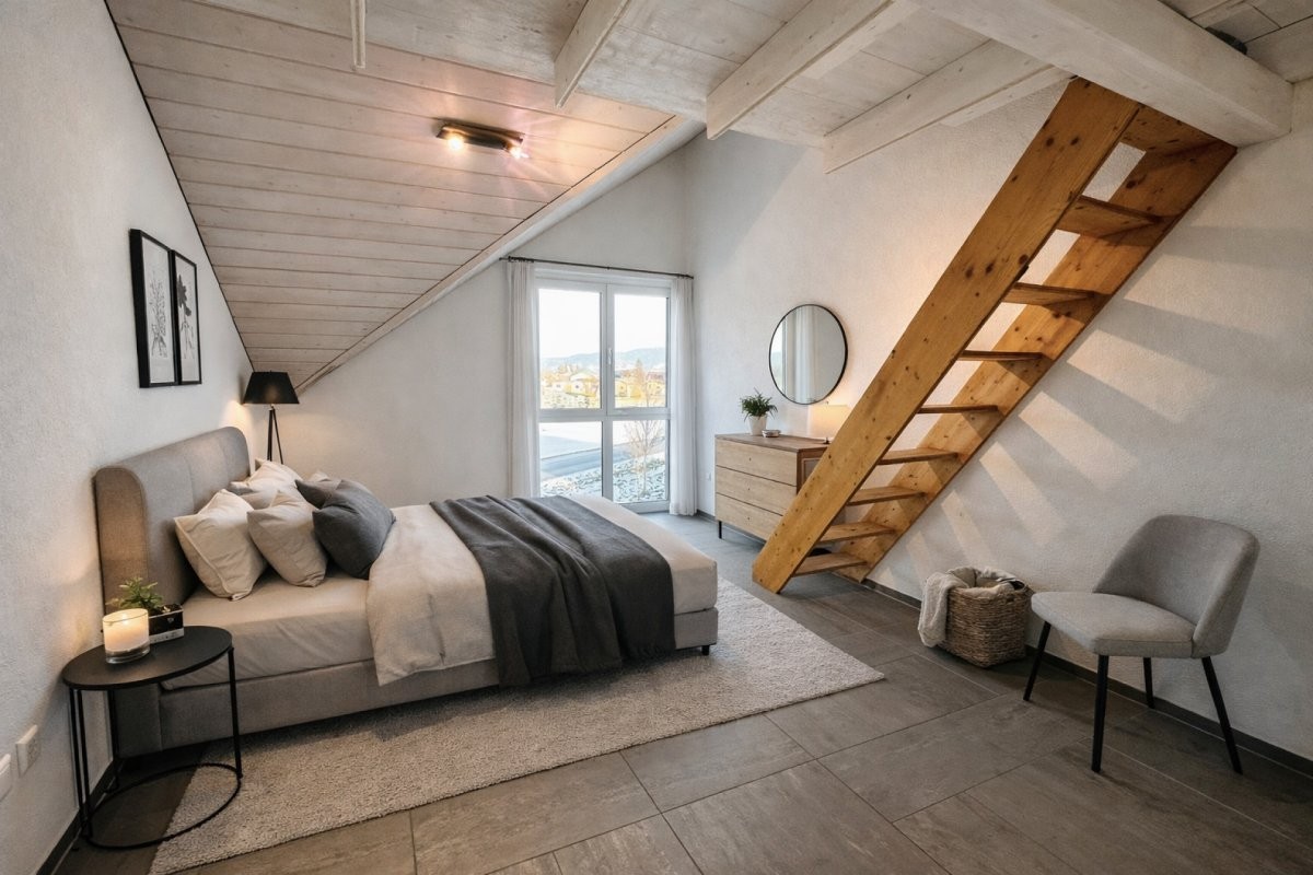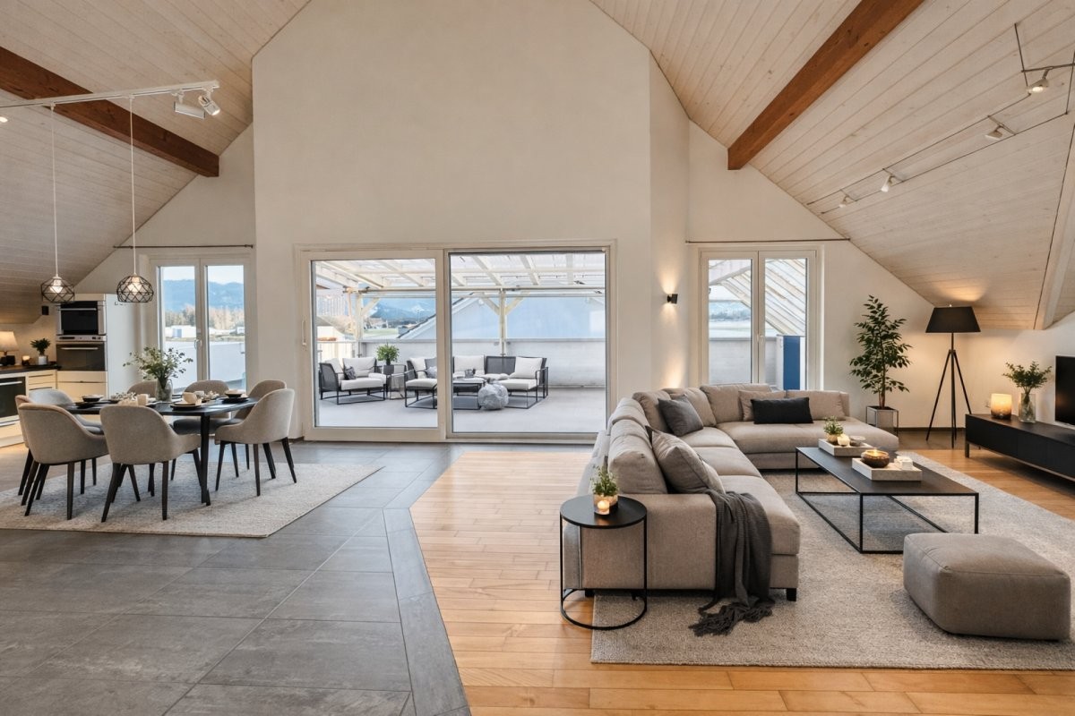 Dieses helle und ruhige Zuhause überzeugt mit Grosszügigkeit, viel Licht und modernem Wohnkomfort. Die Raumhöhe von bis zu 4 Metern im Wohnbereich schafft ein offenes, luftiges Wohngefühl und verleiht der Wohnung besondere Eleganz. Grosszügige Fenster sorgen den ganzen Tag für Sonne und eine warme Atmosphäre sowie eine schöne Aussicht auf die Rheintaler Berge. Der offene Wohn- und Essbereich mit moderner Küche lädt zum Geniessen ein. Highlight ist die grosse, überdachte Terrasse. Elektrische Storen, eine Waschmaschine in der Wohnung sowie ein grosszügiges Bad mit Dusche und Badewanne runden dieses attraktive Wohnangebot ab. Aussenparkplätze sind ausreichend vorhanden und können dazugemietet werden.