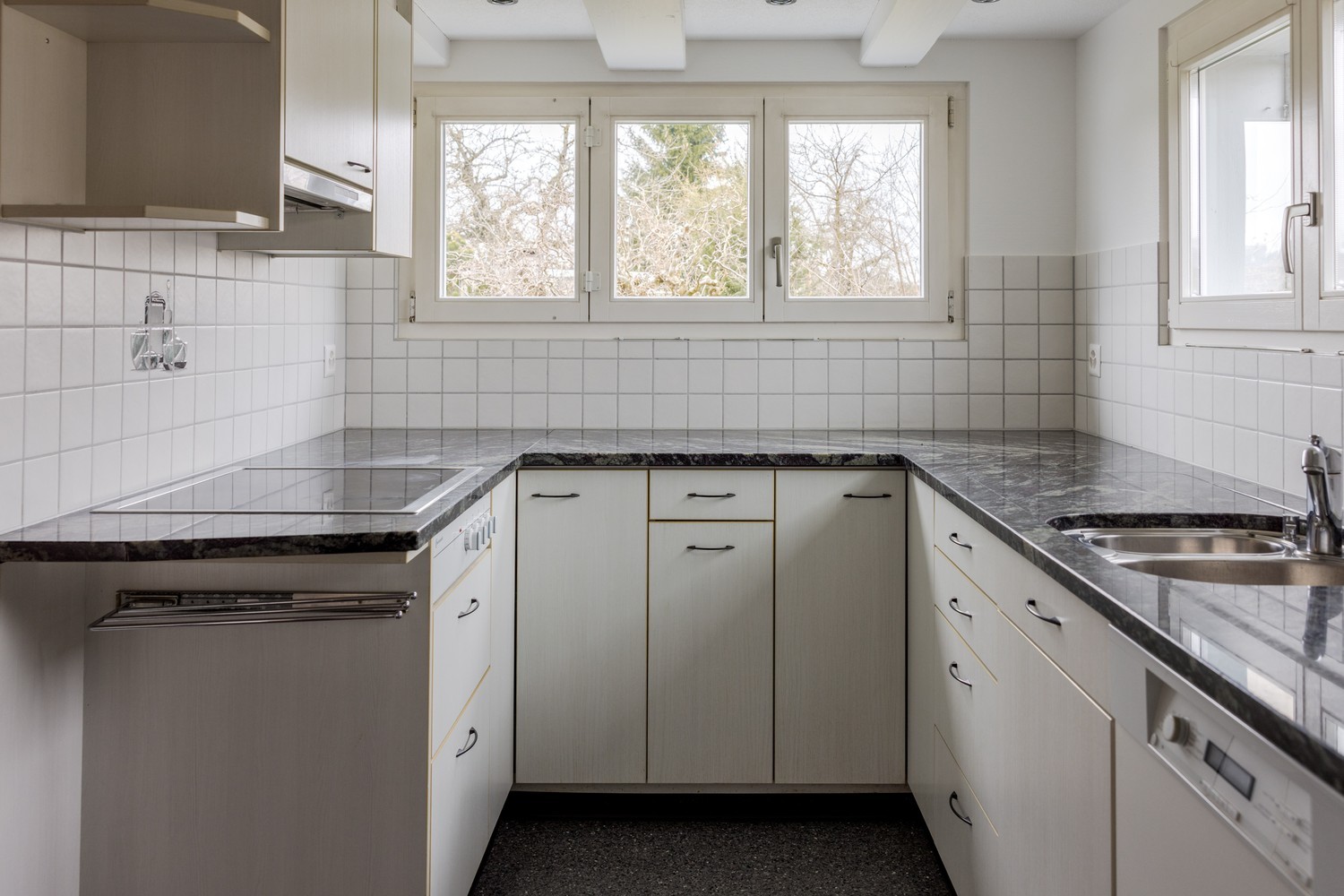 Küche mit Glaskeramikkochfeld, Combisteamer und Geschirrspüler