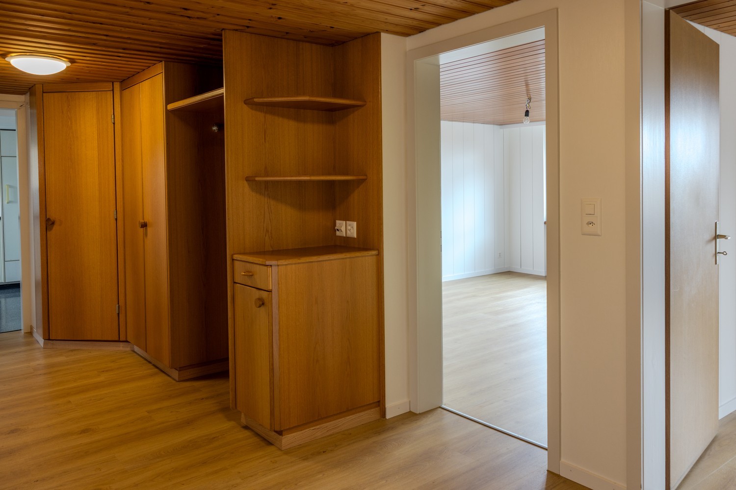 Gang mit Garderobe, zweitürigem Einbauschrank und Putzschrank