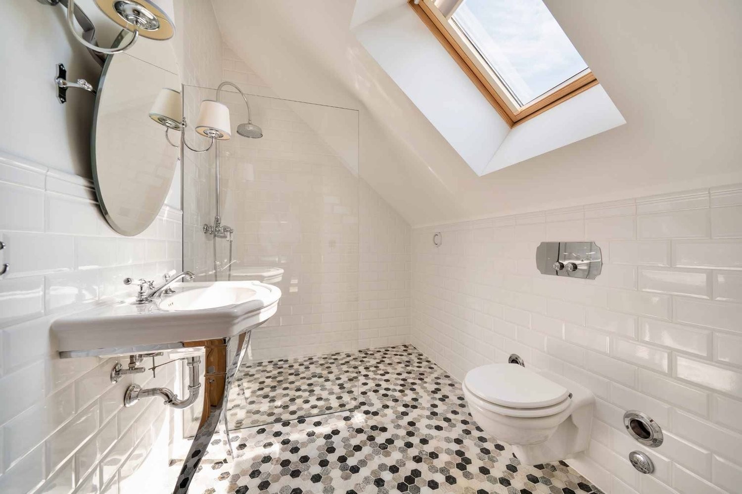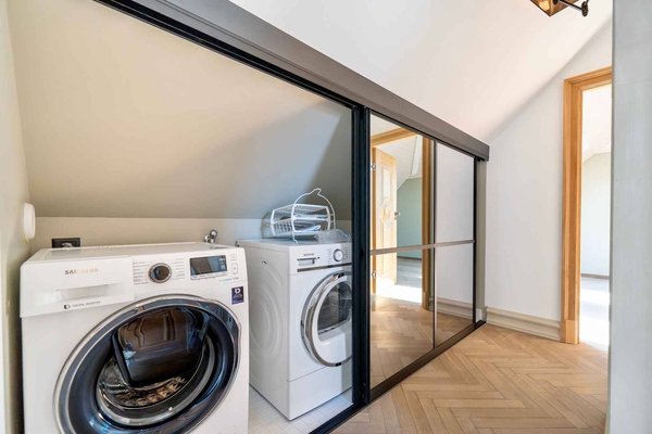 l'étage, les combles accueillent deux chambres au caractère cosy et lumineux. On y trouve également un hall avec rangements et colonne de lavage ainsi qu'une salle d'eau avec douche à l'italienne.