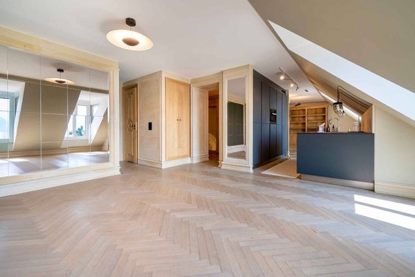 Dès l'entrée, une atmosphère d'élégance se révèle. L'accès s'effectue aussi bien par un escalier que par un ascenseur privatif, véritable privilège qui s'ouvre directement sur l'intérieur de l'appartement.