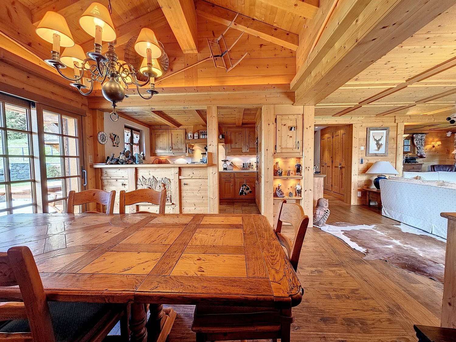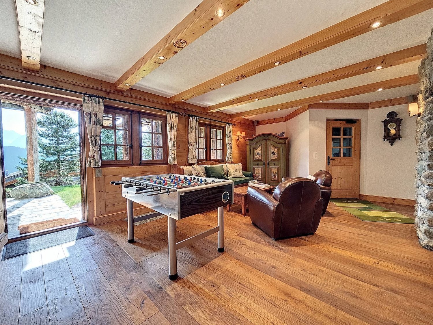 Le chalet dispose de 3 élégantes chambres doubles (dont 2 avec salle de bain privative), une chambre d'appoint sous combles, ainsi qu'un second salon avec canapé-lit, baby-foot et espace repas typique, parfait pour les soirées fondue et raclette.
