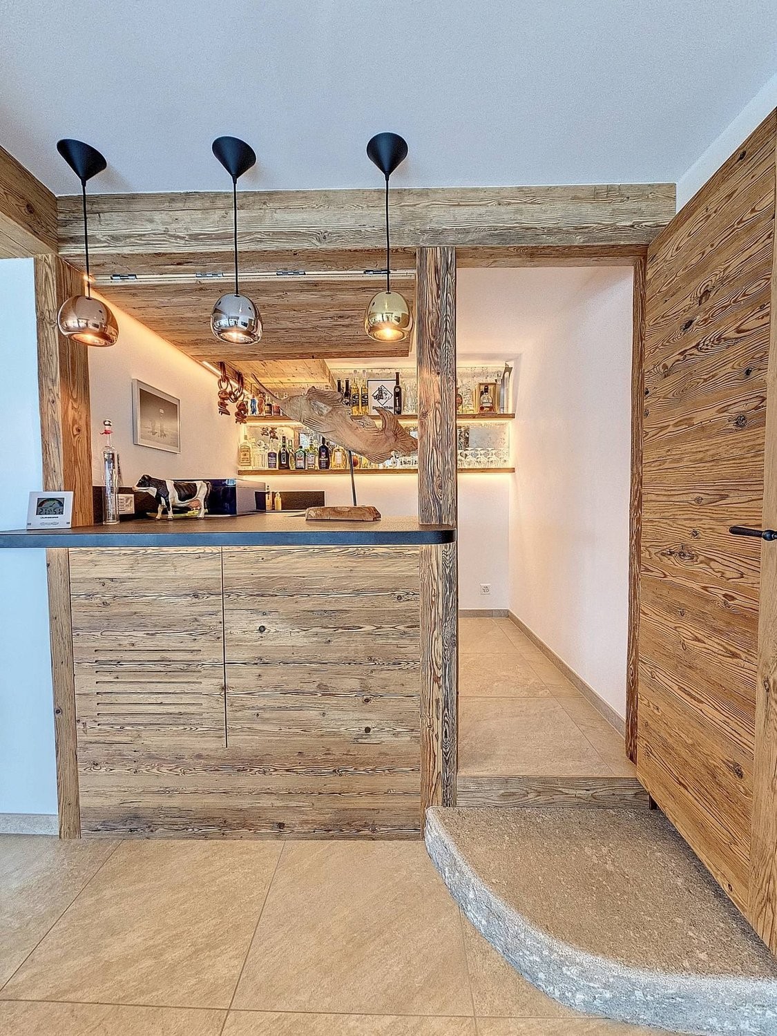 Garage pour 34 véhicules, ski-room high-tech, buanderie, et charmant mazot indépendant avec couchage, cuisine et salle d'eau pour accueillir encore deux personnes dans un cocon de charme.