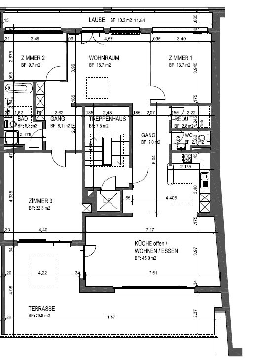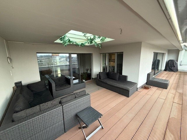 Grosszügige Terrasse mit viel Privatsphäre und Blick auf den Zihlkanal